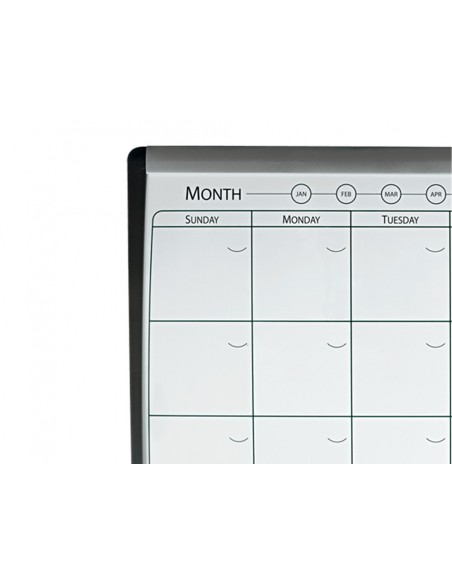 Planificador mensual nobo magnètic + tauler suro horitzontal amb marc arquejat plata i negre 585x430 mm
