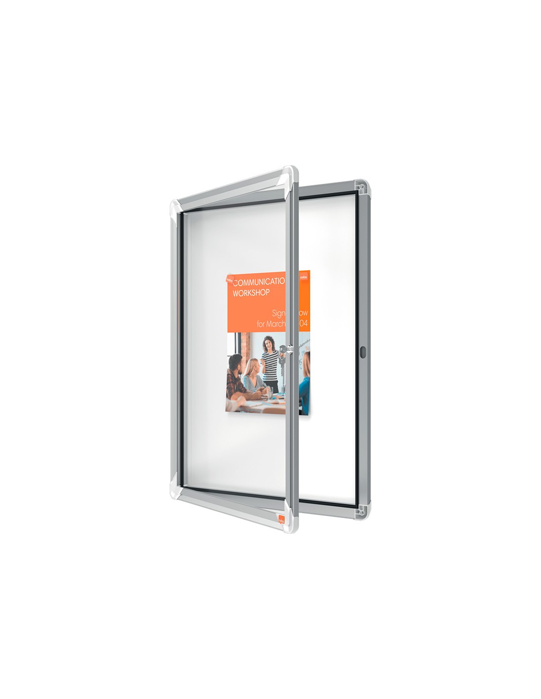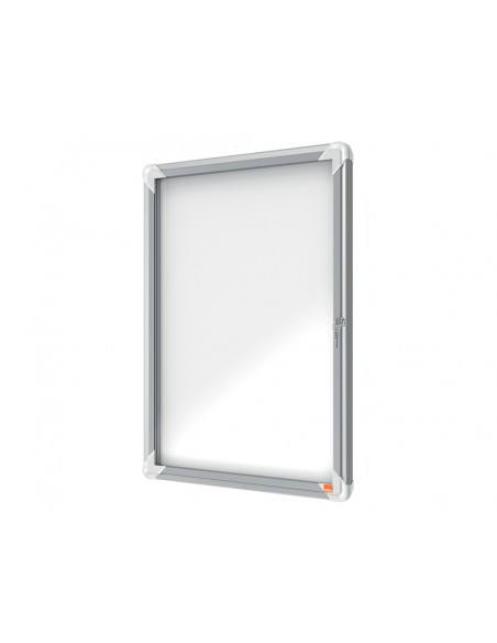 Vitrina amb pany per a exteriors amb superfície BLANCA magnètica d'esborrat en sec i porta de seguretat de vidre de 4 mm de gruix. Ideal per mostrar els documents amb seguretat sota qualsevol condició climàtica. Manté els documents secs i assegurances en