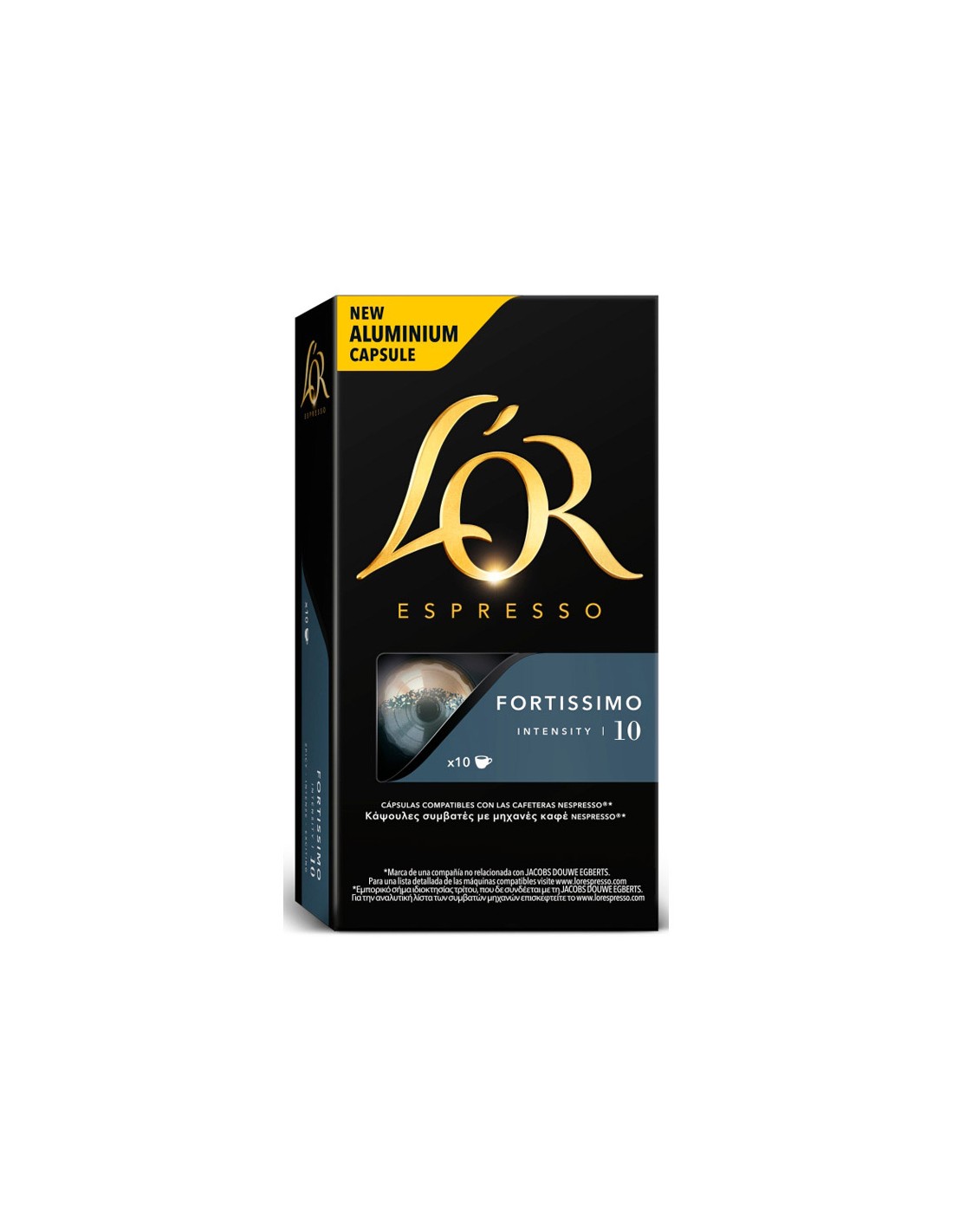 Cafe l`or espresso fortissimo intensitat 10 caixa de 10 càpsules compatible nespresso