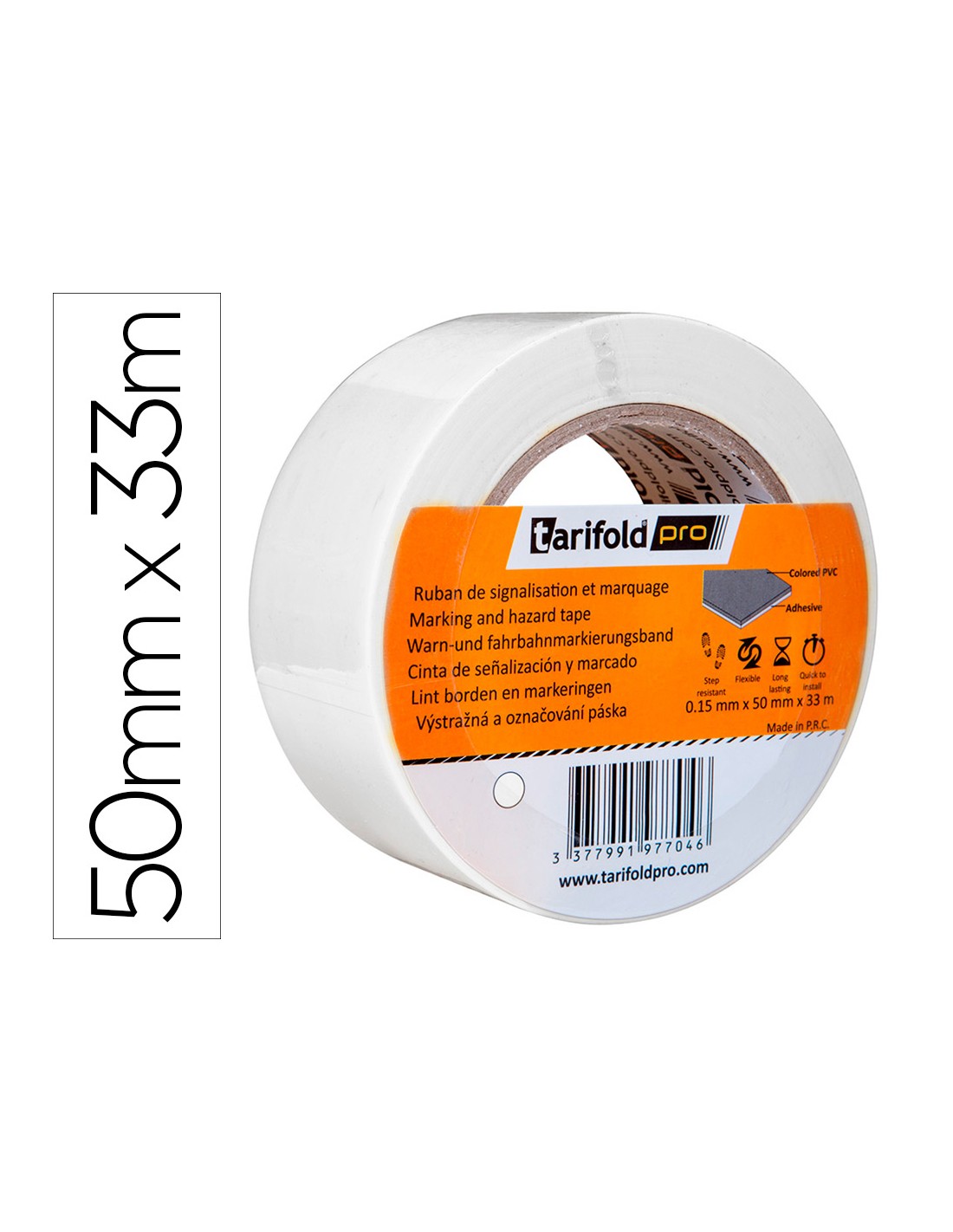 Cinta adhesiva tarifold per marcatge i senyalització de sòl 33 mt x 50 mm color blanc