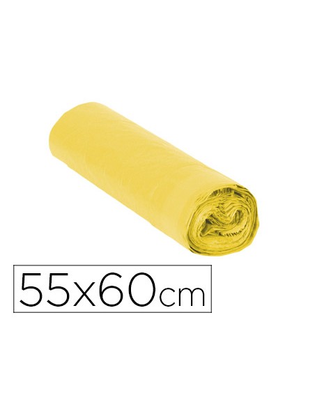 Bossa escombraries domèstica groc amb autotancament 55 x 60 cm rotllo de 15 unitats