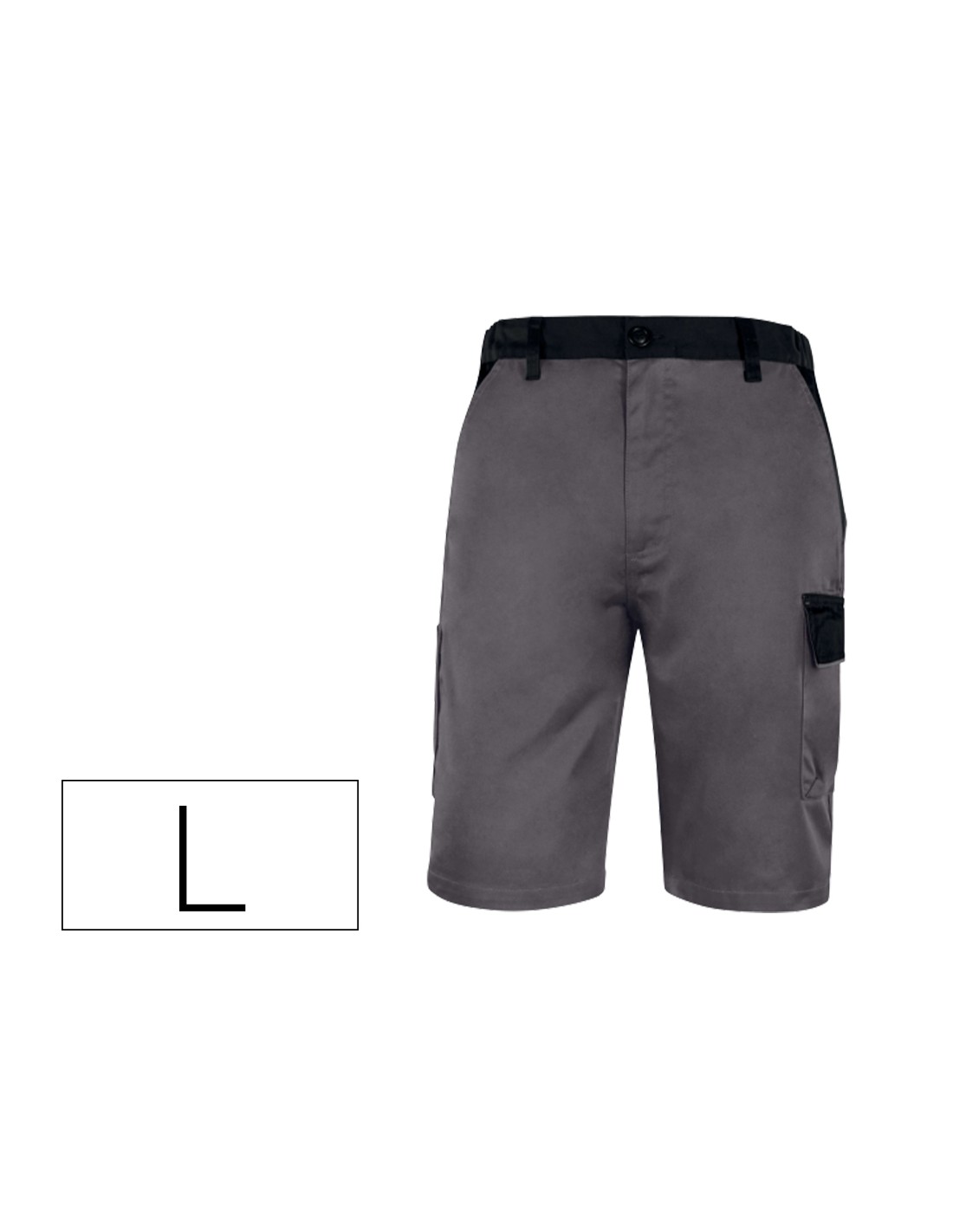 Pantalons de treball DELTAPLUS bermuda cintura ajustable 5 butxaques color gris. Talla L. Teixit 65% polièster i 35% cotó de 235 g/m². Cintura ajustada per elàstic. 5 butxaques. HOMOLOGAT EN NORMA EN ISO 13688.