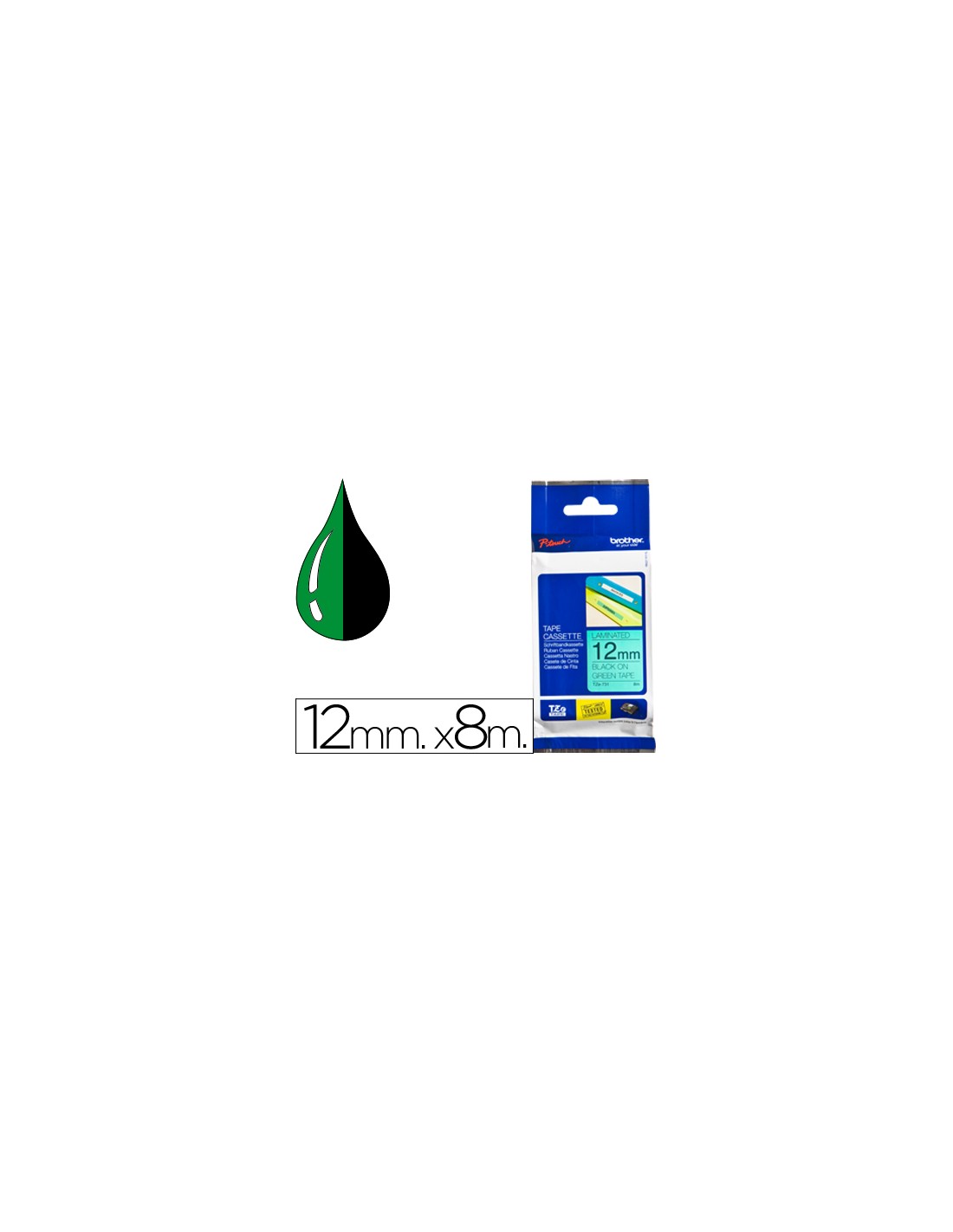 Cinta brother tze-731 verd-negre 12mm longitud 8 mt