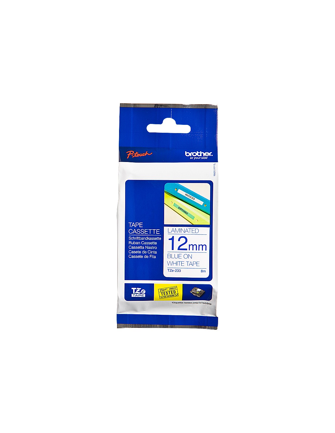Cinta brother tze233 blanco-azul 12mm longitud 8 mt