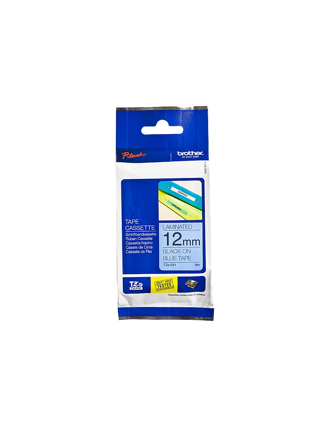 Cinta brother tze531 azul-negro 12mm longitud 8 mt