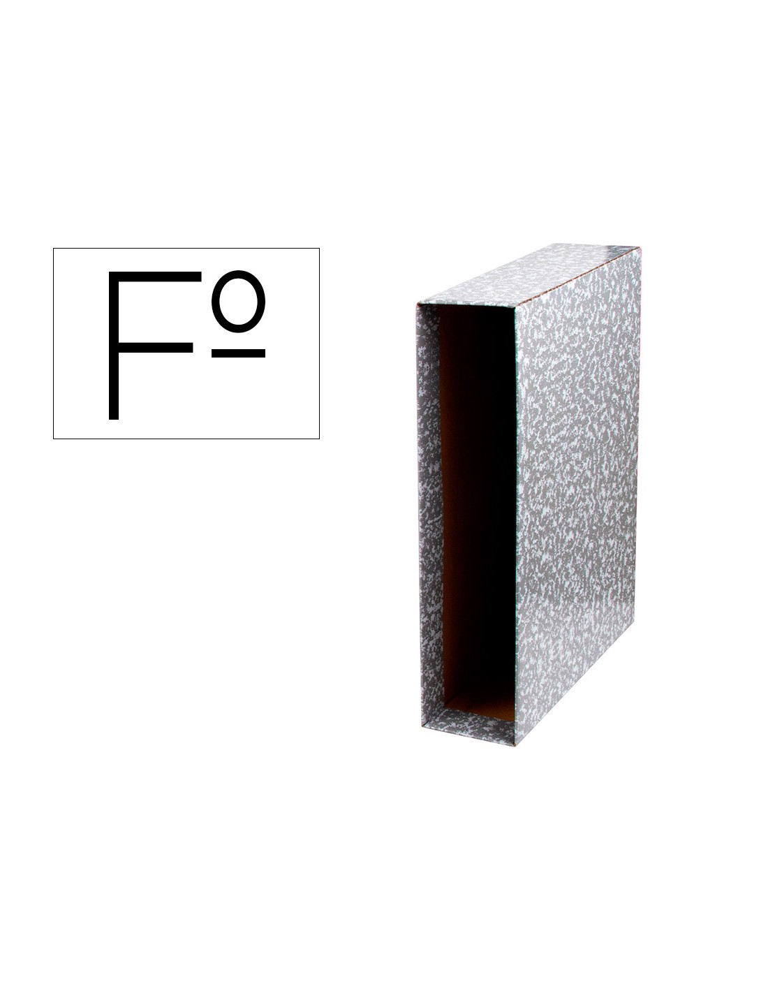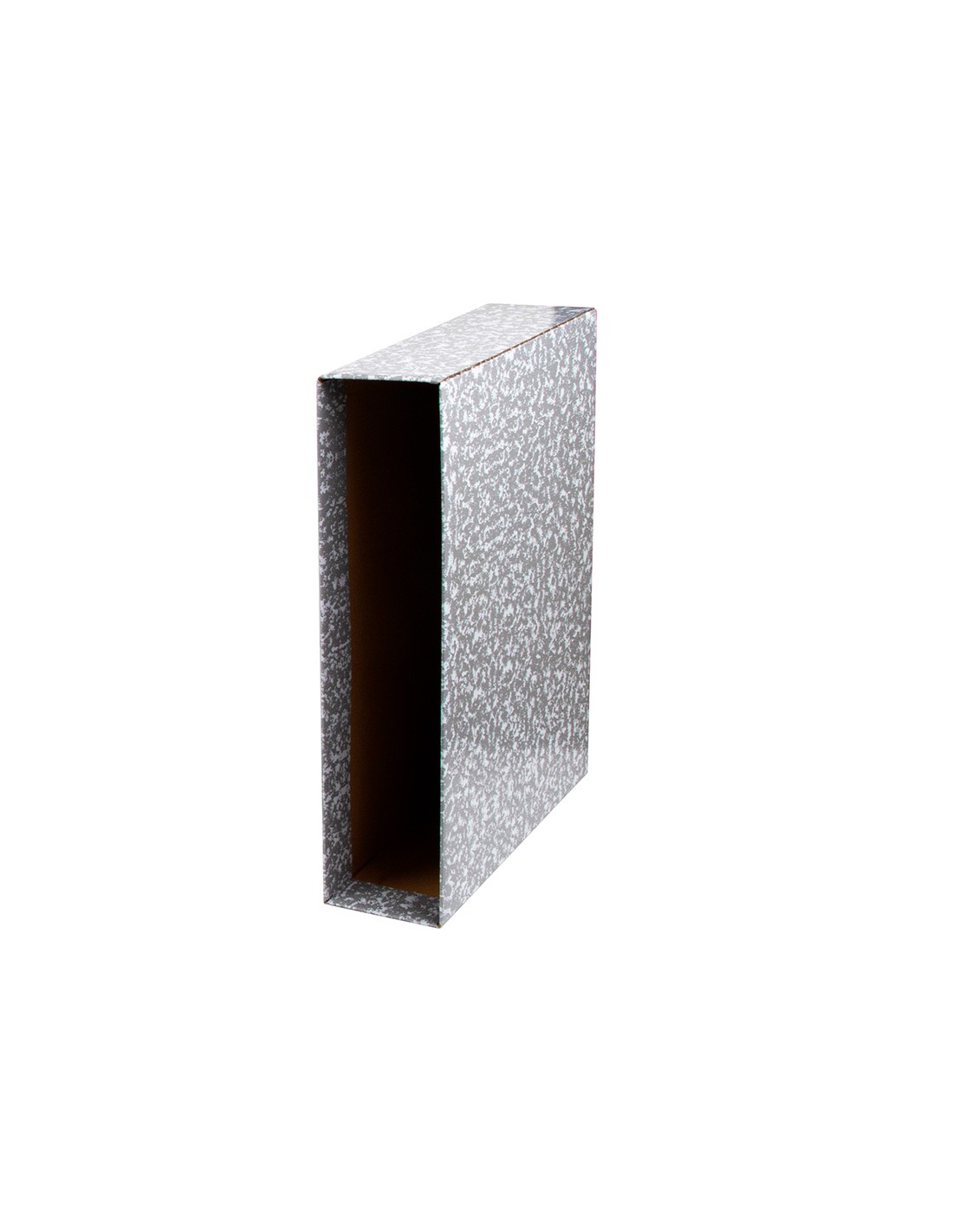 Archivador de cartón entrecolado de 1,9 mm de espesor forrado interior y exterior. Mecanismo de palanca niquelado de 75 mm, compresor metálico, ollao y cantoneras largas. Lomo ancho. Sin índice, cajetín opcional. Ancho de lomo 80 mm.