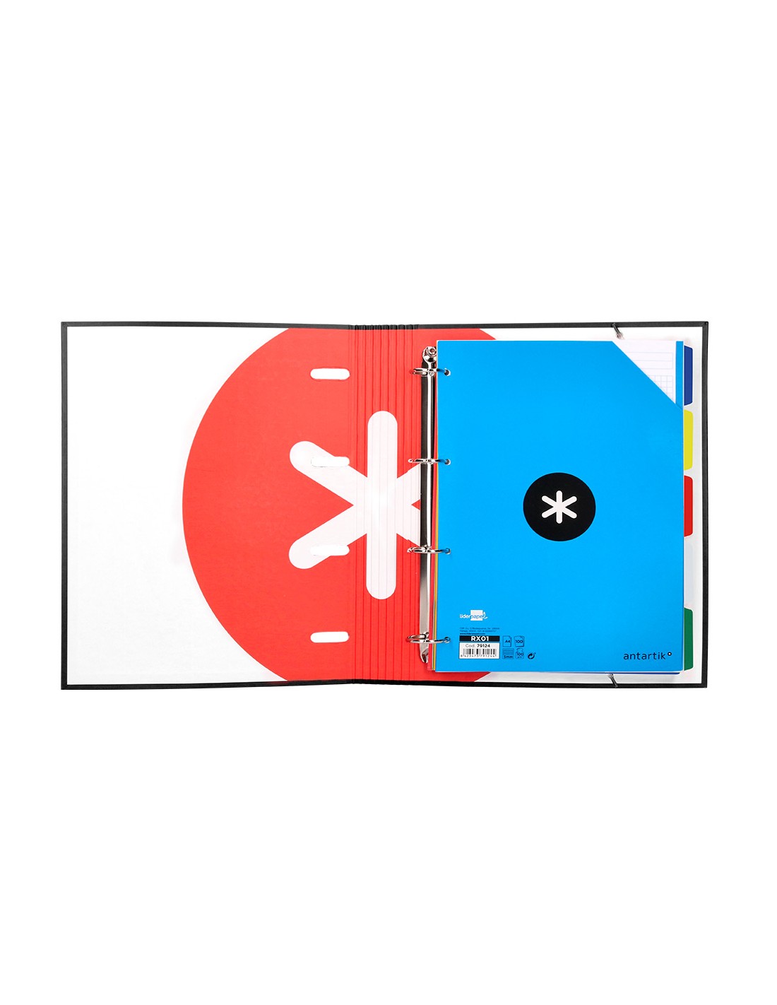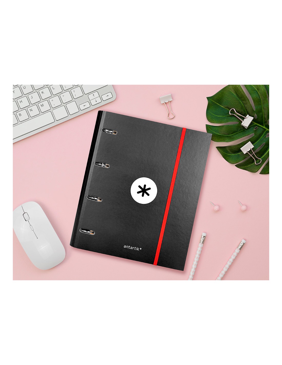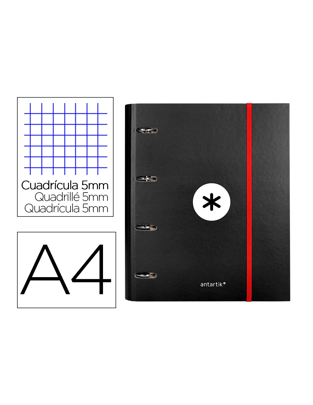 Carpeta con recambio antartik a4 cuadro 5mm forrada 4 anillas 40mm redondas con solapa color negro