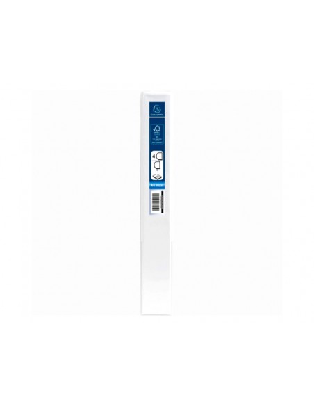 Carpeta de anillas personalizable fabricada en polipropileno. Anillas mixtas. 3 bolsillos exteriores y un bolsillo interior horizontal. Color blanco. Formato DIN A4+.
