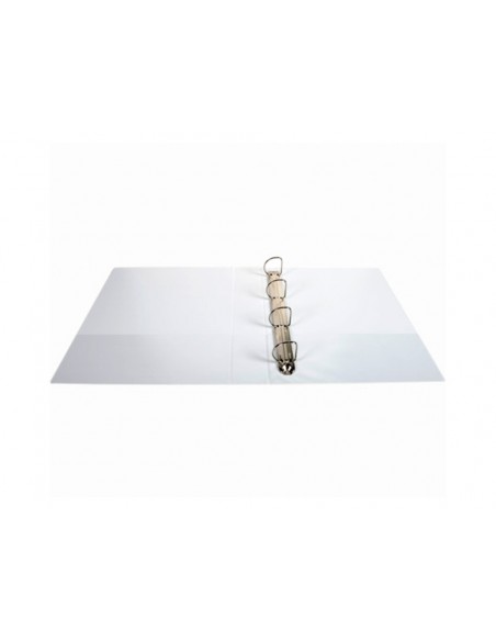 Carpeta de anillas personalizable fabricada en polipropileno. Anillas mixtas. 3 bolsillos exteriores y un bolsillo interior horizontal. Color blanco. Formato DIN A4+.