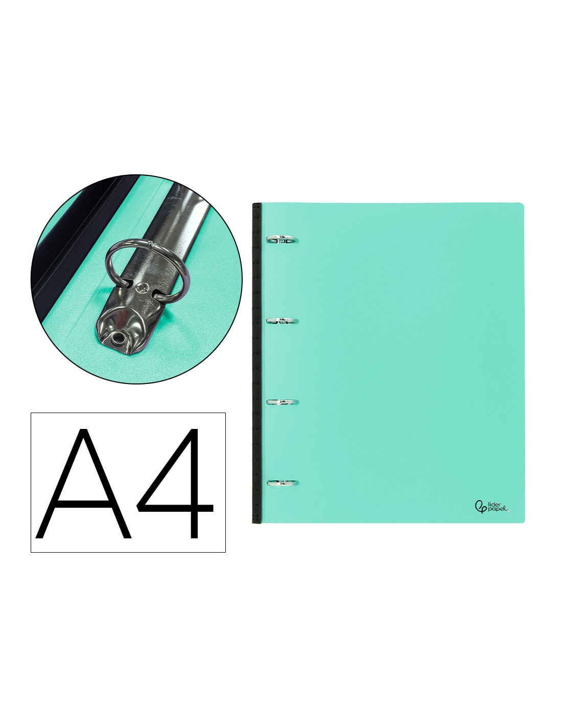 Carpeta liderpapel 4 anillas redondas 25 mm polipropileno din a4 ultra compacta con lomo extensible 4 cm verde