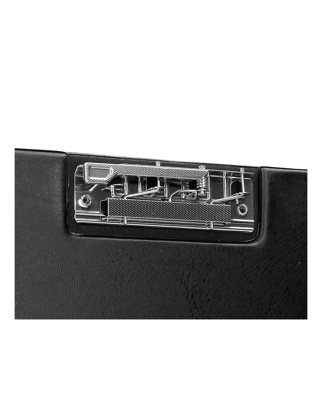 Portanotas de cartón forrado en plástico soldado. Con tapa y pinza disponible en la parte superior o interior lateral, con pinza de gran resistencia. Tamaño folio.