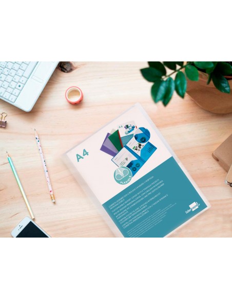 Bolsa portadocumentos. Fabricada en polipropileno. Con portada personalizable. Colores transparentes. Formato DIN A4. 400 micras.