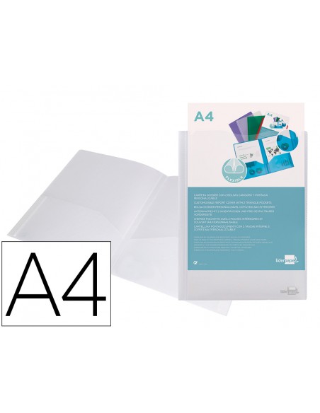 Carpeta liderpapel dossier dos bolsas canguro 45684 polipropileno din a4 transparente