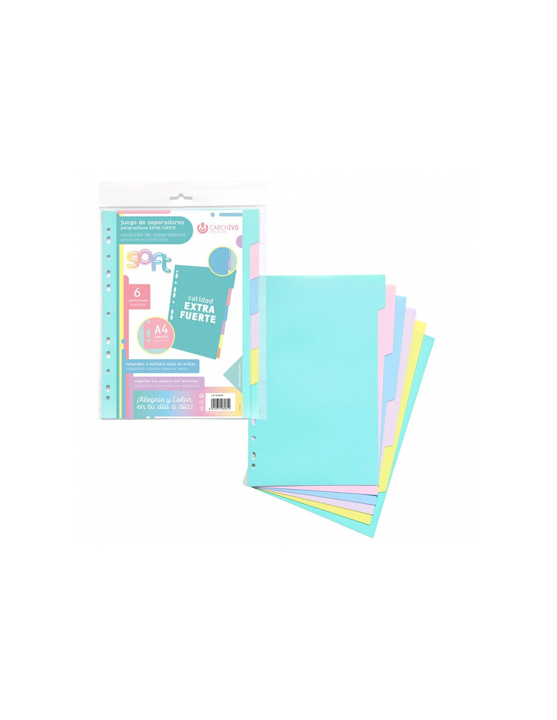 Separador carchivo polipropileno soft extra fuerte din a4 multitaladro juego de 6 posiciones