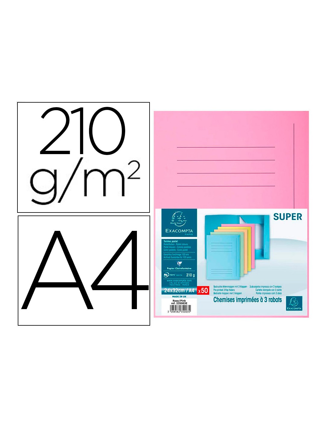 Subcarpeta cartulina con 3 solapas exacompta din a4 impresa rosa 210 gr