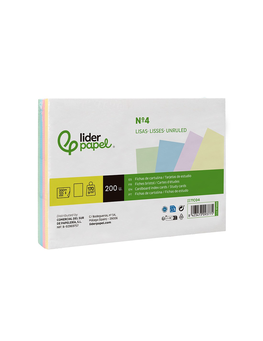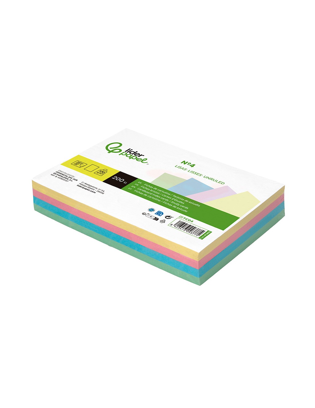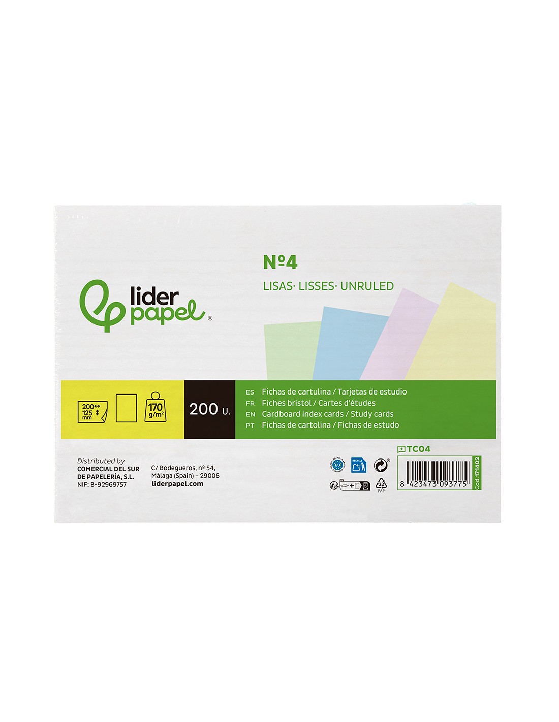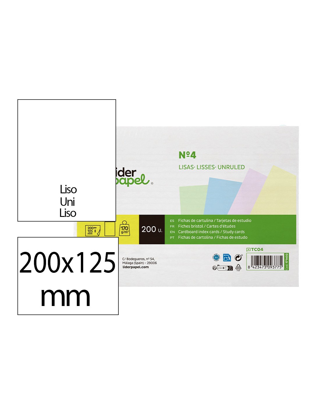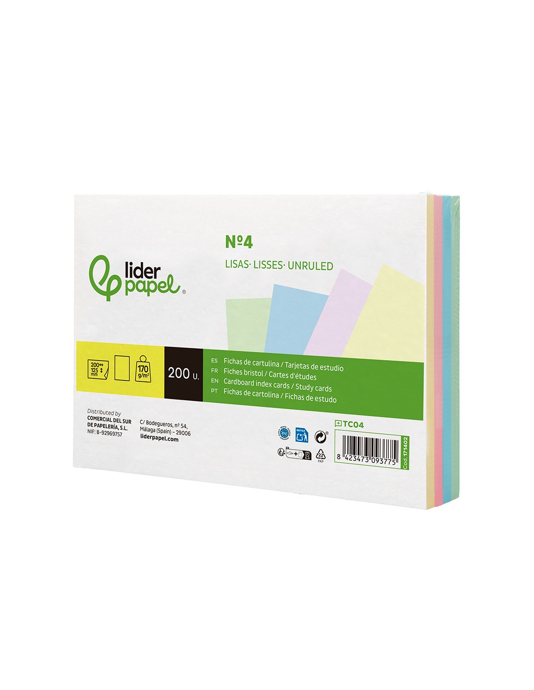 Tarjeta liderpapel para estudiar lisa cartulina de colores 170 gr/m2 125x200mm paquete de 200 unidades
