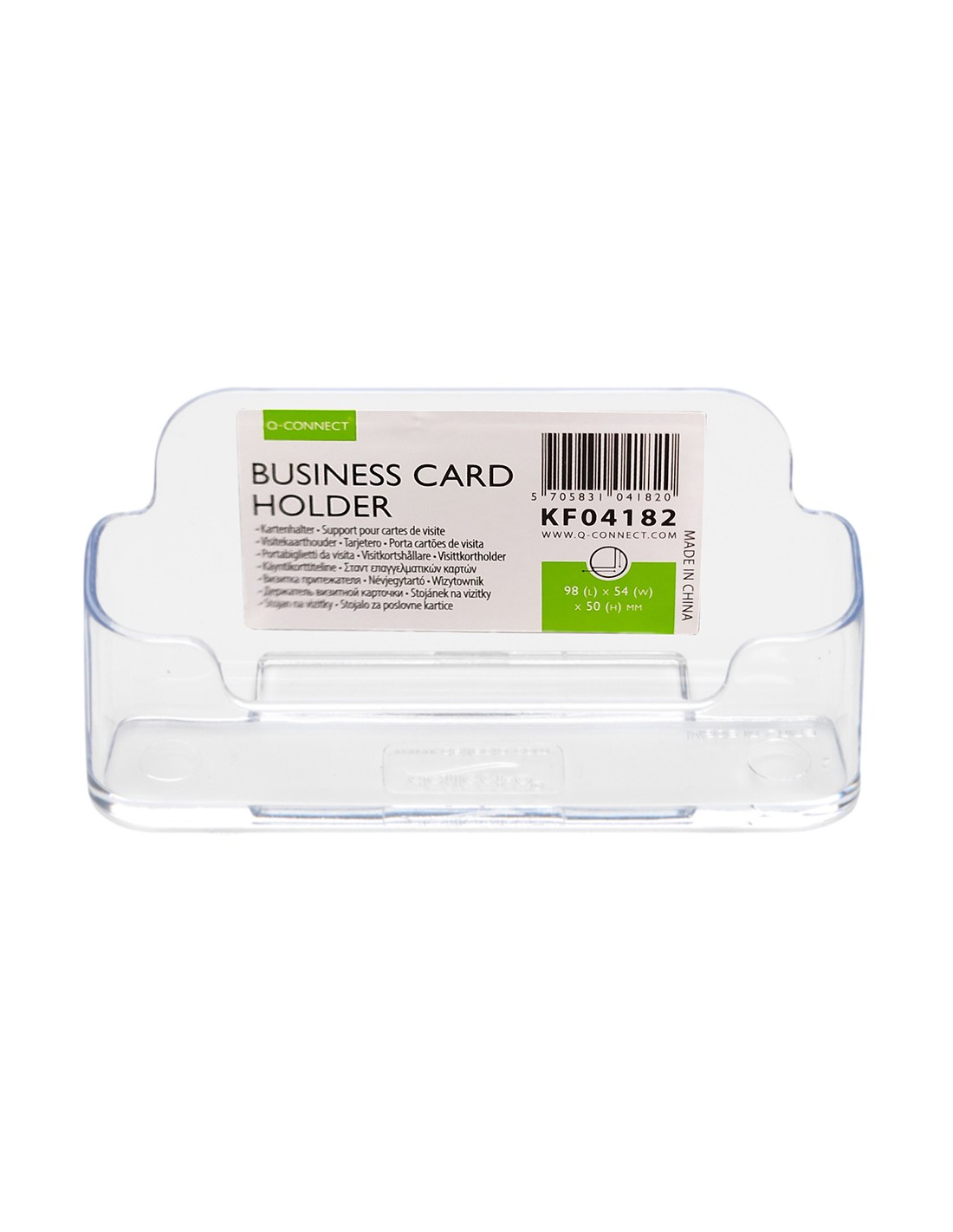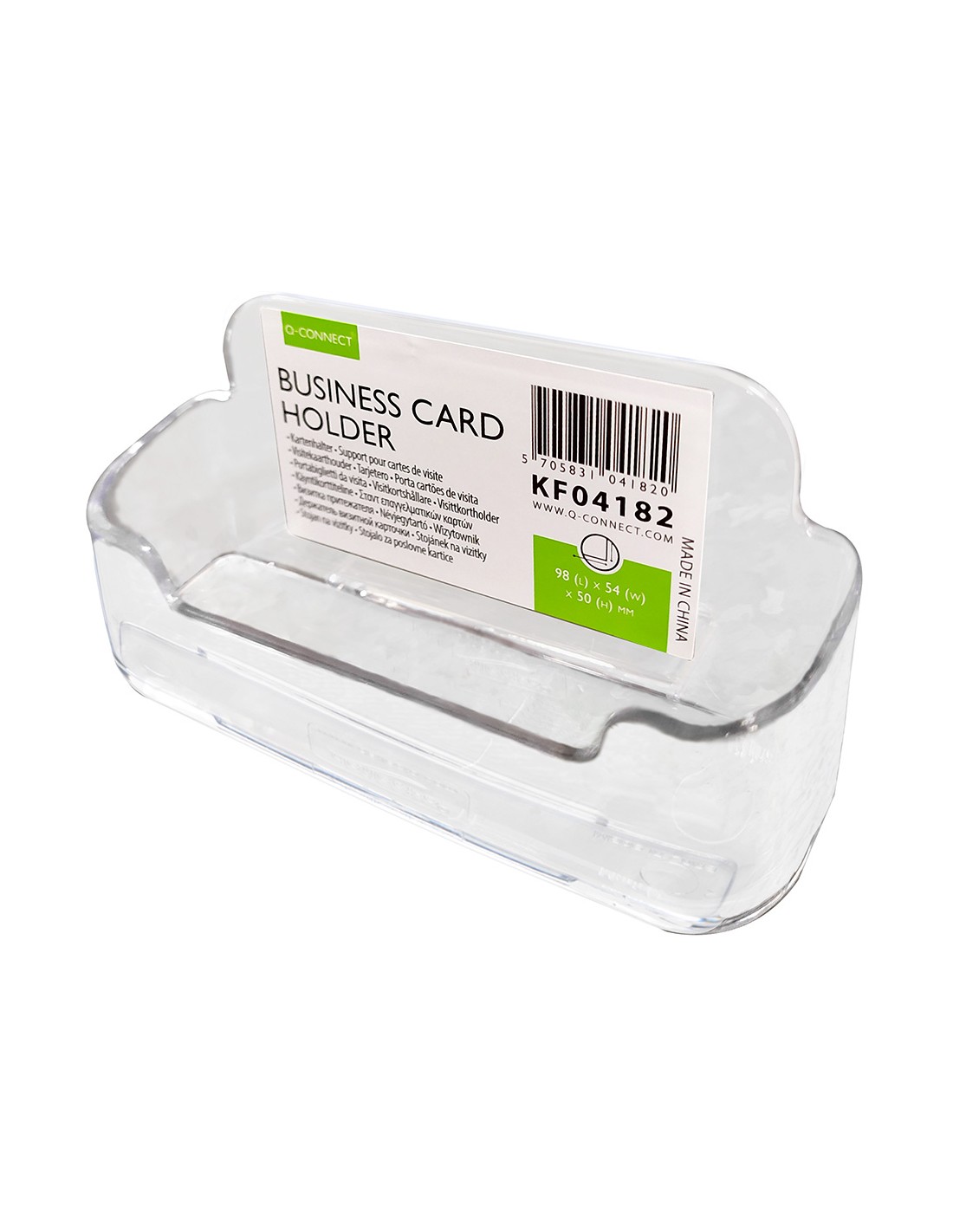 Muy útil para mantener las tarjetas de visita en orden, con una capacidad de 50-60 tarjetas, dependiendo del grosor de las mismas. También sirve como expositor de tarjetas. Fabricado en metacrilato. Medidas 110 x 70 x 31 mm.