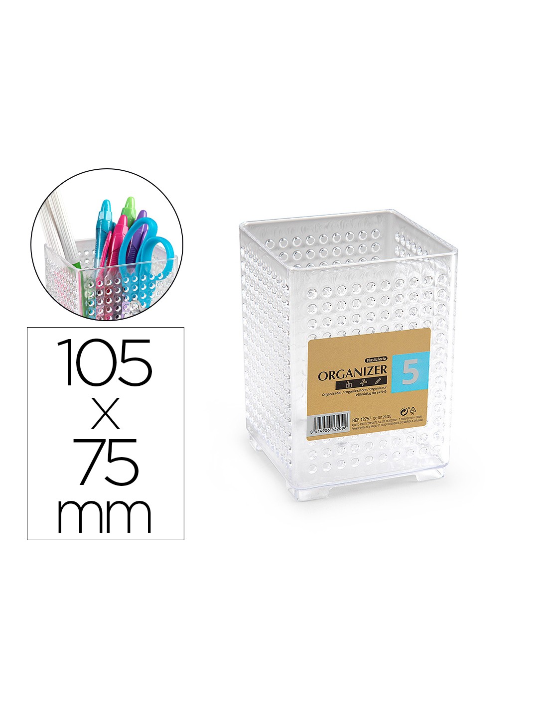 Cubilete portalapices plastiforte transparente plastico organizer cuadrado nº5 75x75x105 mm