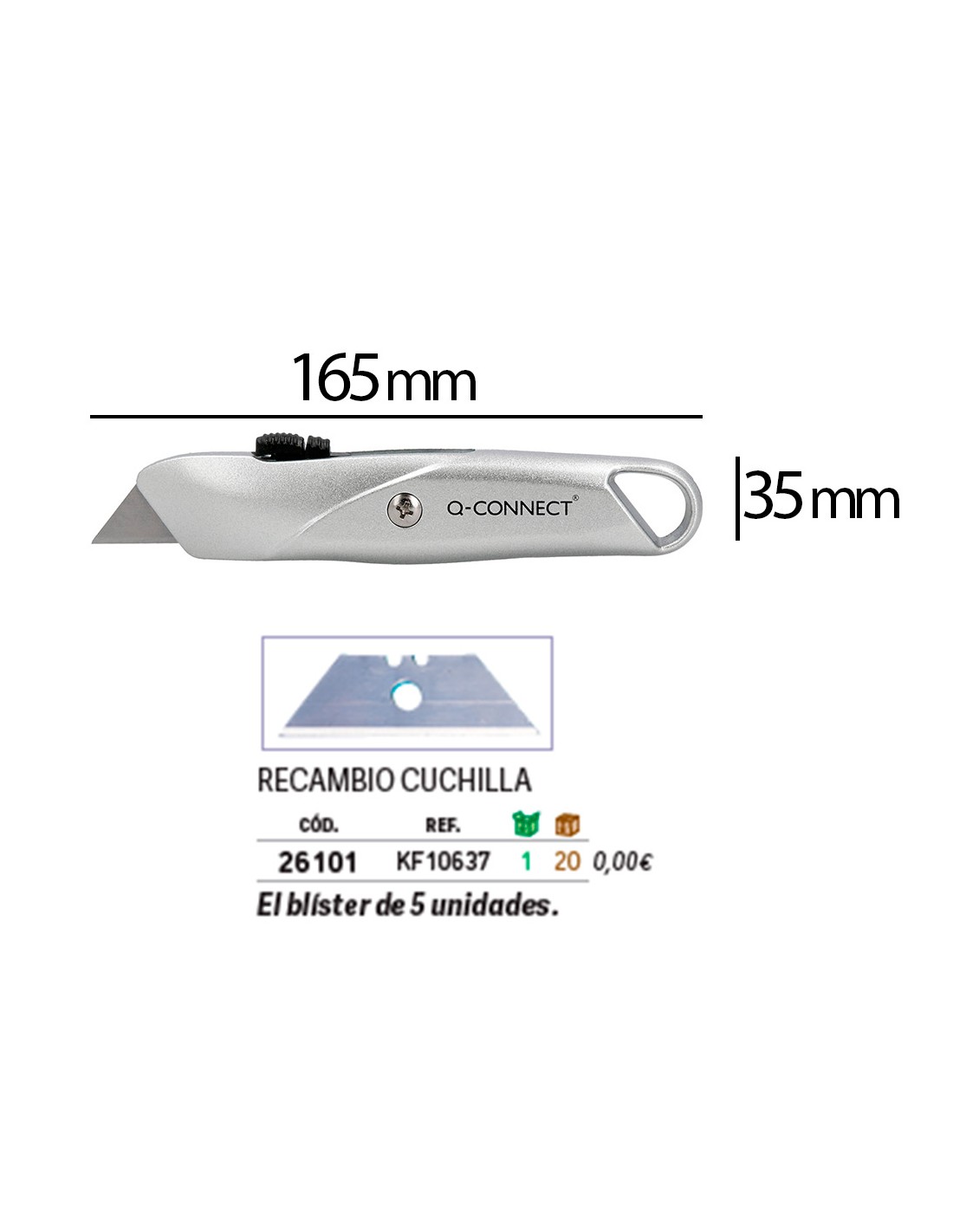 Cuter q-connect metalico ancho retractil con mecanismo de bloqueo cuchilla 18 mm xd-53 blister 1 unidad