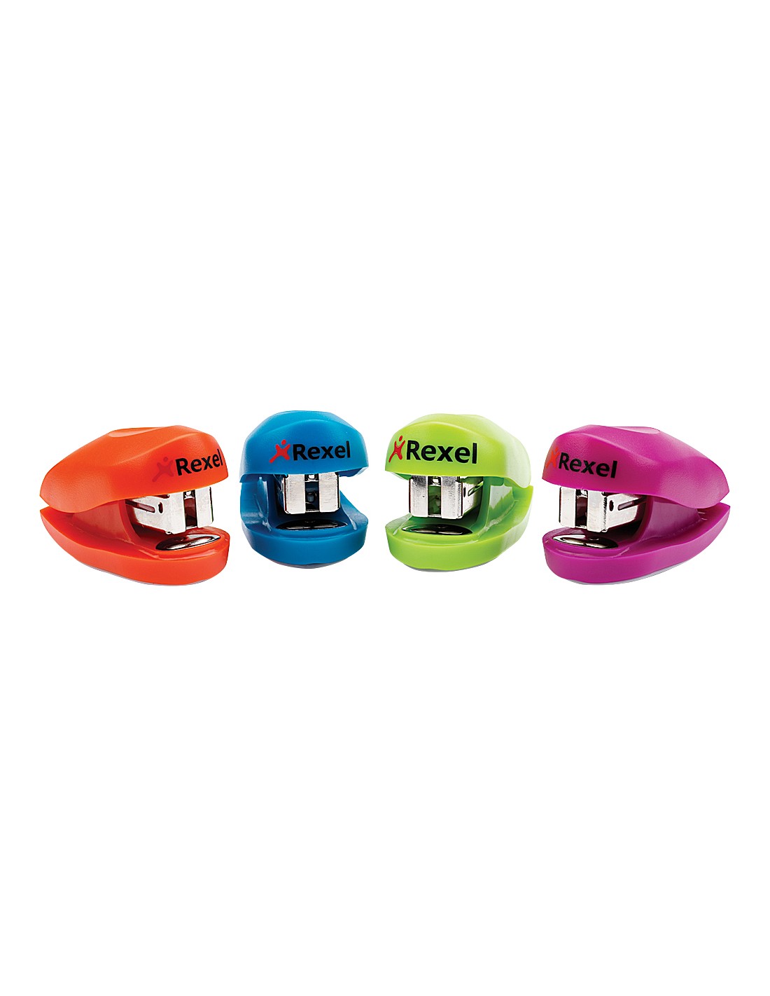 Combinando un diseño divertido con la fiabilidad, la mini grapadora Buddy tiene un práctico mecanismo de recarga de grapas por la parte superior y una base de goma suave. La Buddy grapa hasta 10 hojas a la vez y tiene una profundidad de entrada de 15 mm. Es compatible con las grapas Rexel nº 56 y viene con 1000 grapas. Disponible en 4 colores brillantes.