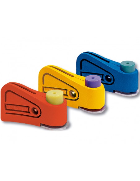 Perforador con cuerpo de plástico y punzón de metal. Práctico sistema que perfora en el lugar exacto. Longitud de la base 65 mm.
