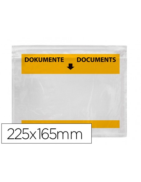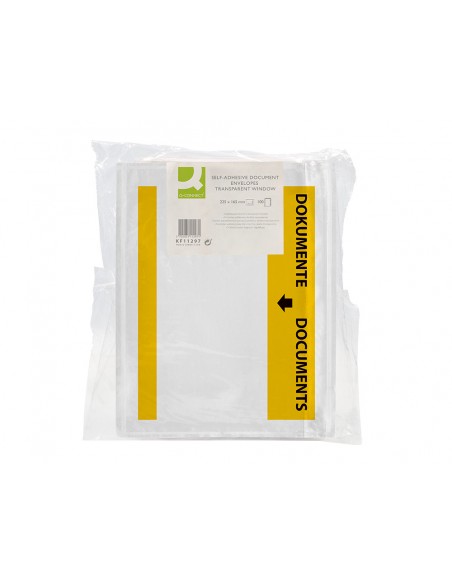 Sobre autoadhesivo q-connect portadocumentos multilingue 225x165 mm ventana transparente paquete de 100
