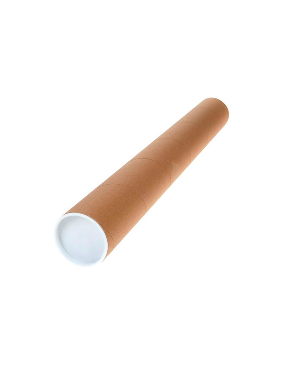 Tubo fabricado en cartoncillo encolado 100% reciclado de 1,8 mm de espesor. Con dos tapas de plástico, una en cada extremo. Alta resistencia. Perfecto para transporte, almacenaje y protección de documentos de gran formato.