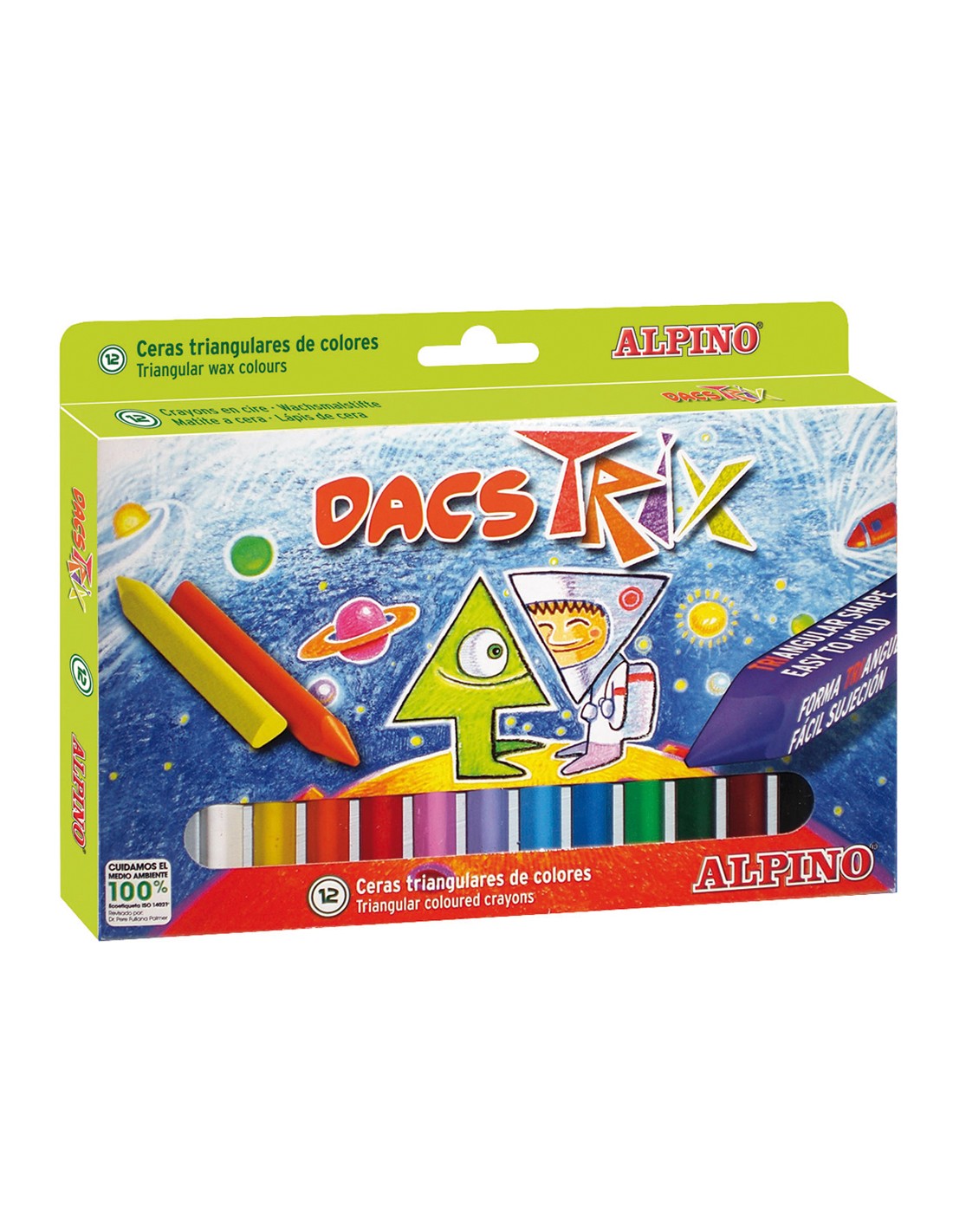 Ceras semiblandas triangulares perfectas para iniciarse en el dibujo. Su forma triangular facilita el correcto agarre de la cera. Altura de la cera 89 mm. Diámetro de la cera 11 mm. La caja de 12 lápices.