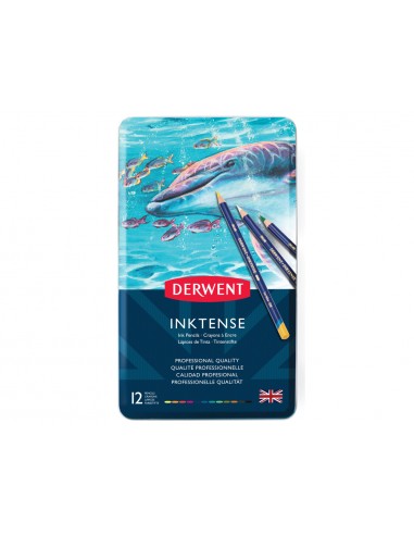 Lapices de colores derwent inktense acuarelable caja metalica de 12 unidades colores surtidos