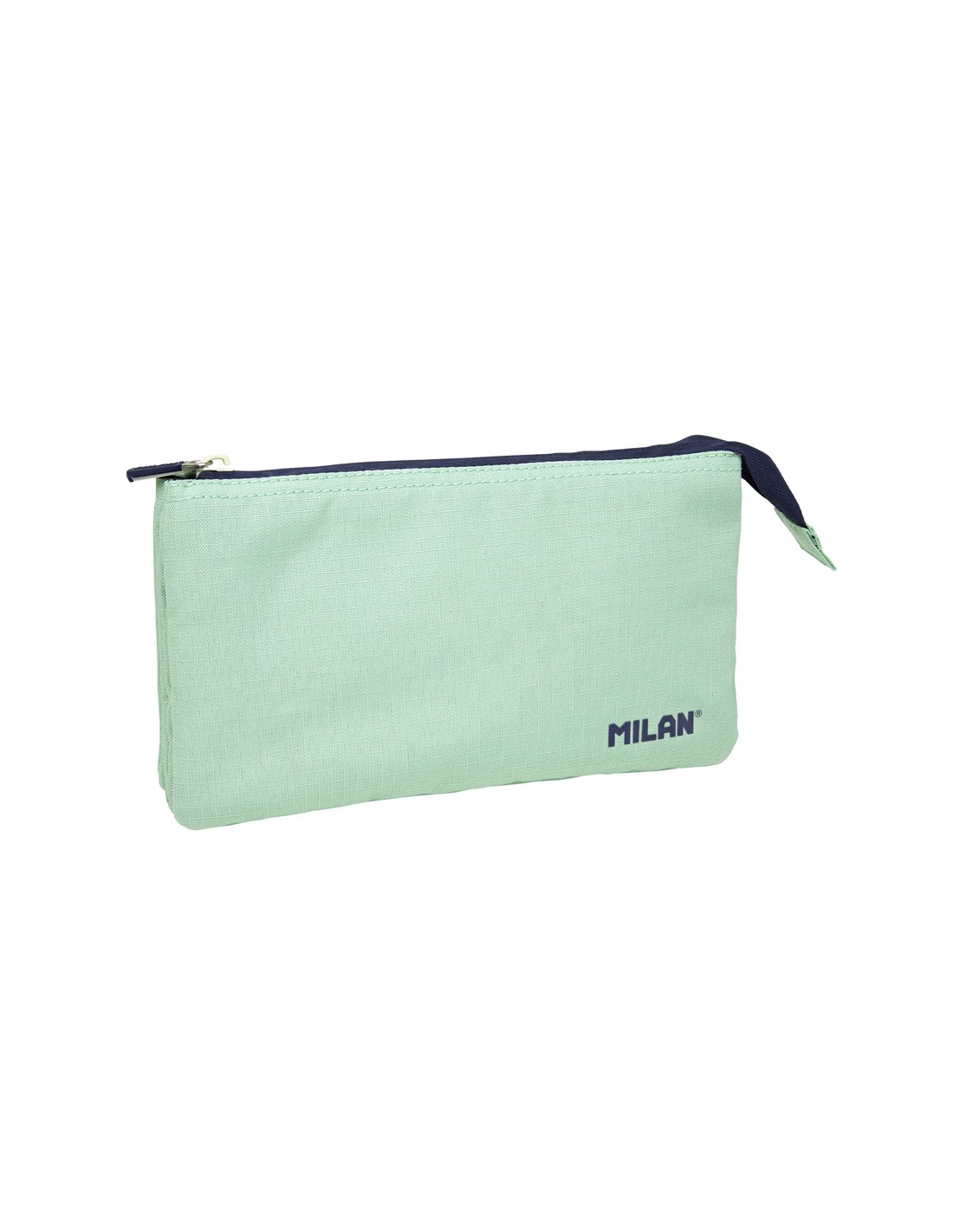 Estuche portatodo con 2 cremalleras y 5 compartimentos, para poder organizar y repartir el contenido. Serie 1918, color verde. Inspirada en los colores y diseño originales de las gomas de borrar Milan, fabricadas en Españadesde 1918. Forro interior estampado azul marino con una cuadrícula que e voca las formas de las gomas Milan. Tejido exterior ripstop ligero y resistente a la rotura y rasgaduras. Utiliza una técnica especial que teje hilos gruesos de refuerzo a intervalos regulares en un patrón entrecruzado.Composición tejido exterior y forro interior de poliéster. Medidas 22x1 2x4 cm.
