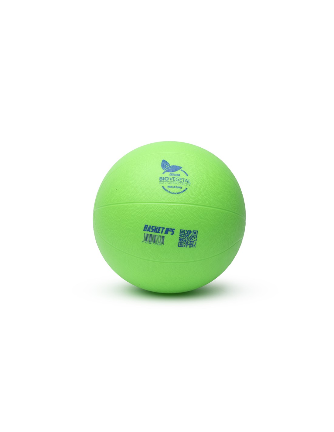 Balón de baloncesto. Fabricado en material Biovegetal Ball con nueva fórmula de base biológica que reemplaza un 50% de sustancias de origen fósil por sustancias derivadas de vegetales de origen renovable. Diámetro 22 cm.