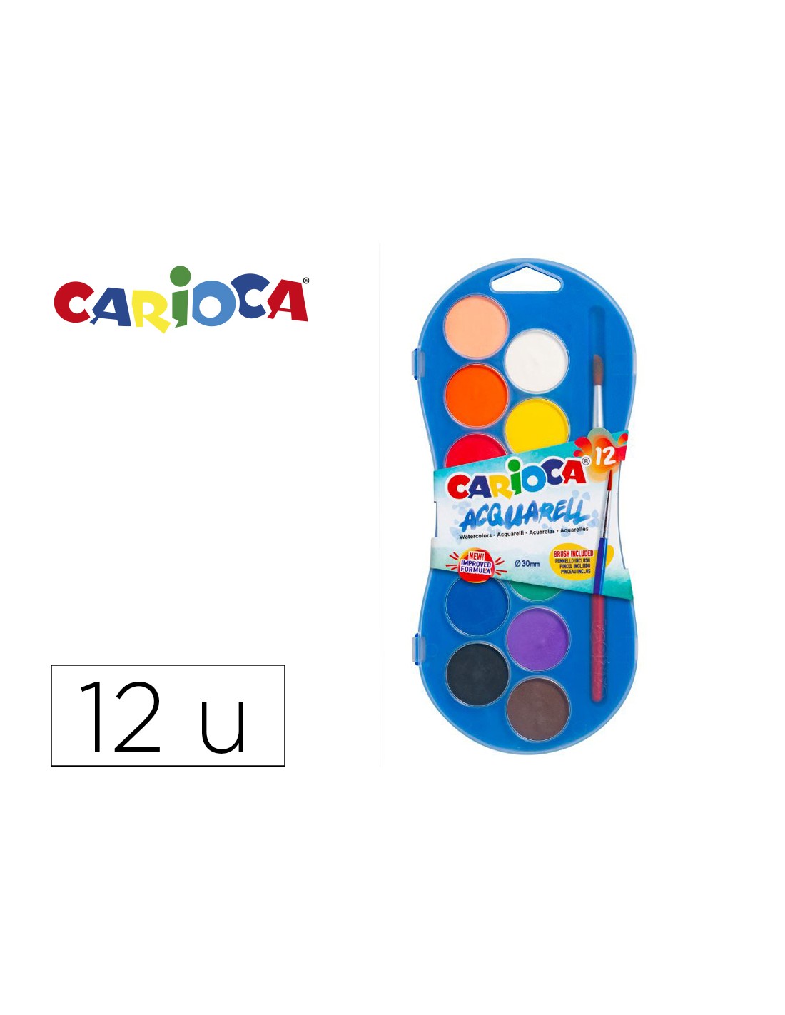 Acuarela carioca 12 colores con pincel estuche de plastico