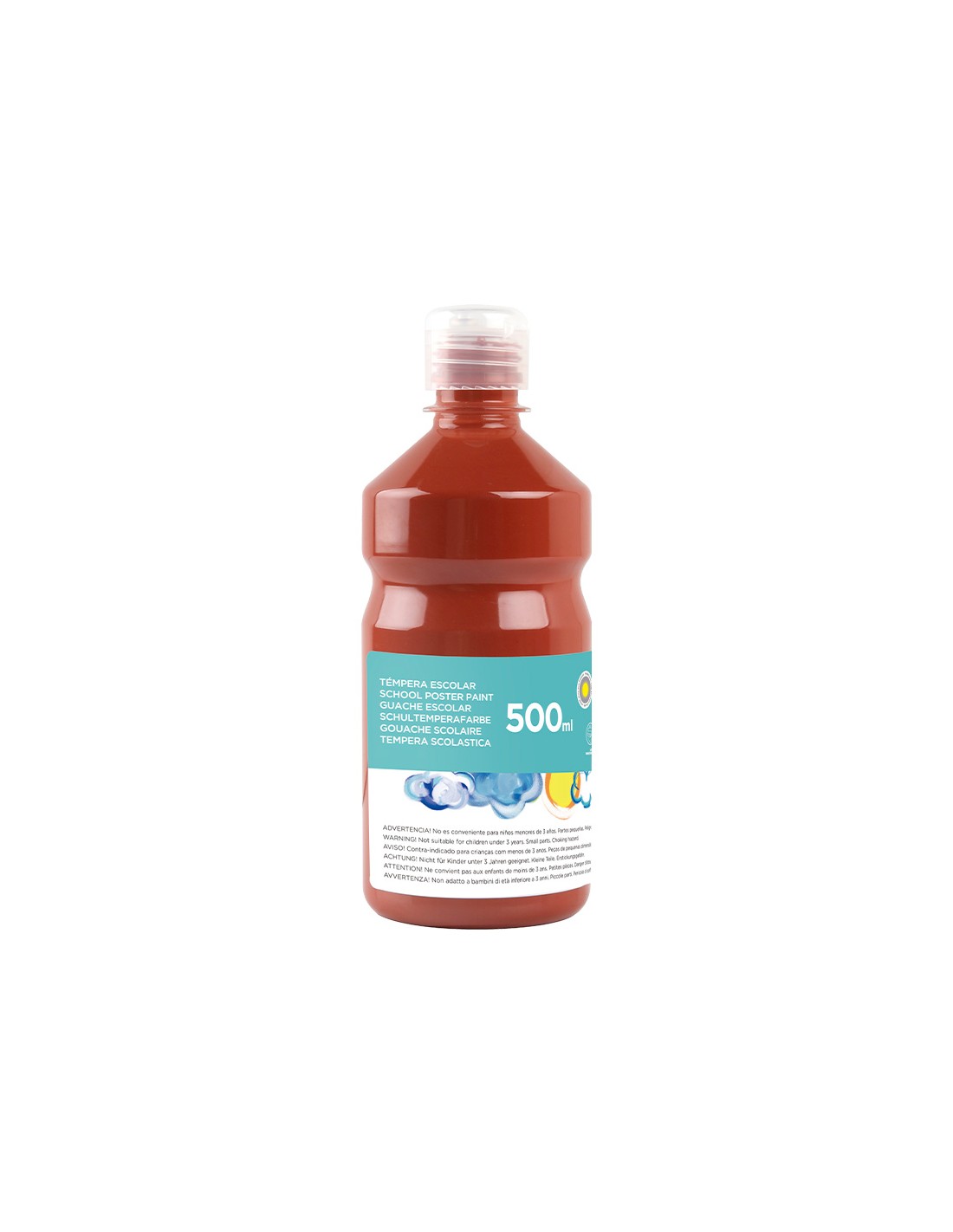 Témpera escolar. Ideal para uso escolar. Adecuada a partir de los 3 años de edad. Superlavable. Con cierre de seguridad. Colores brillantes. La botella de 500 ml.