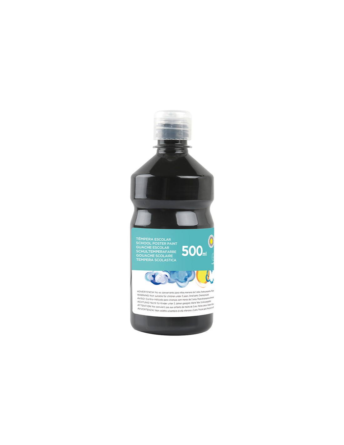 Témpera escolar. Ideal para uso escolar. Adecuada a partir de los 3 años de edad. Superlavable. Con cierre de seguridad. Colores brillantes. La botella de 500 ml.