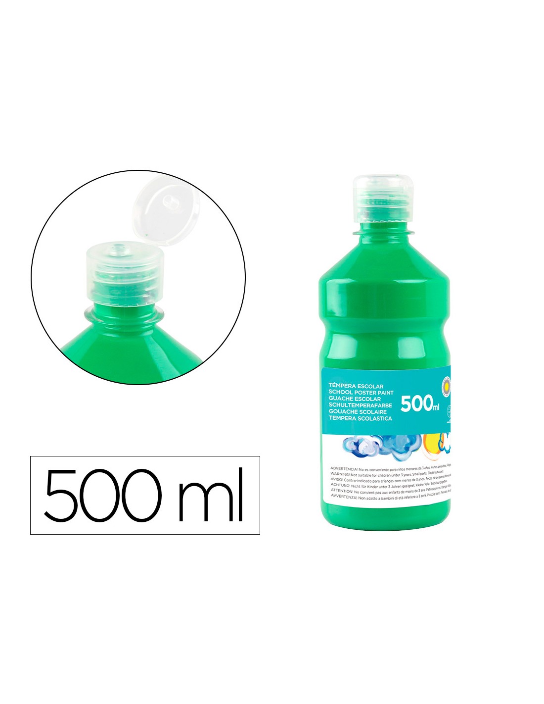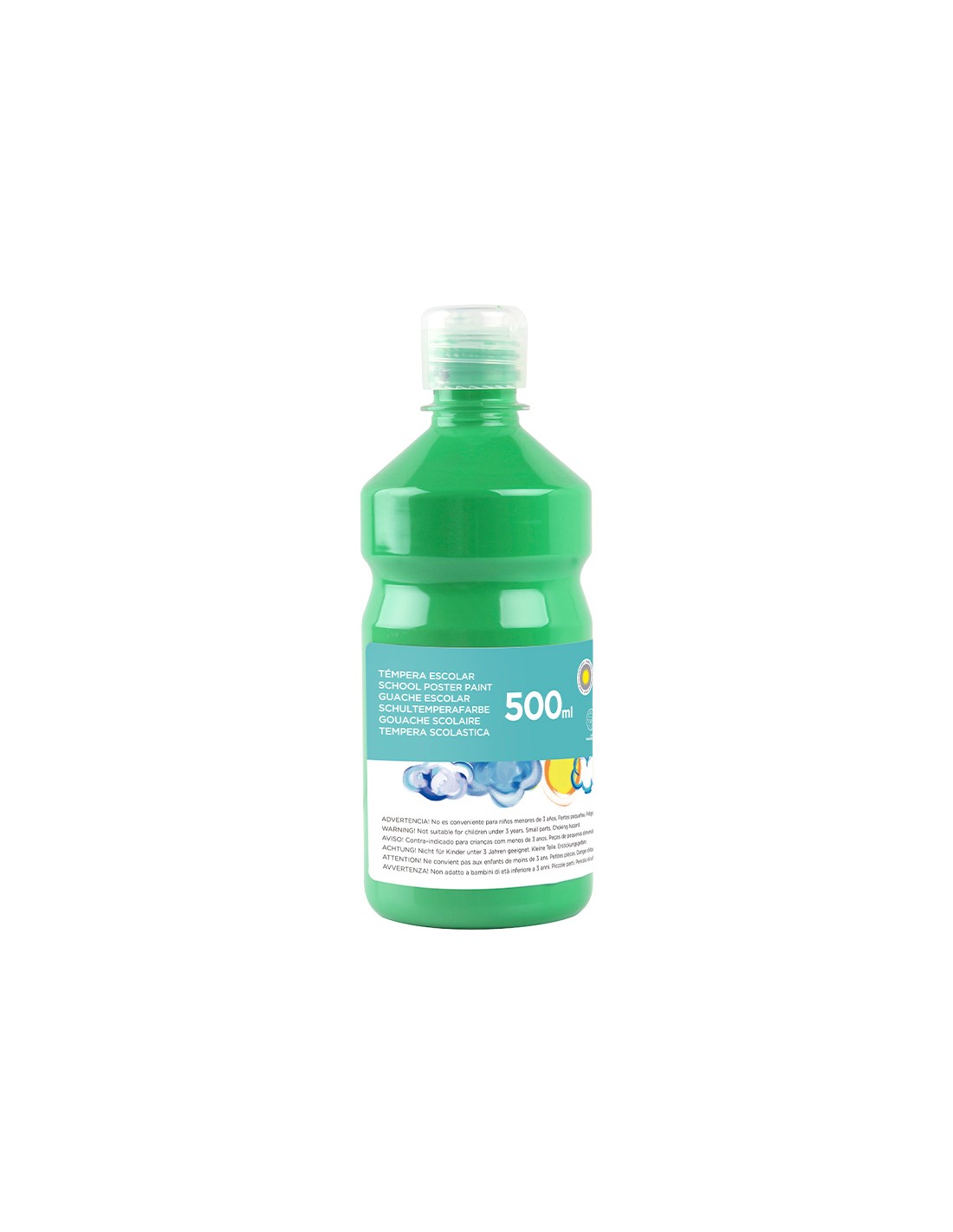 Témpera escolar. Ideal para uso escolar. Adecuada a partir de los 3 años de edad. Superlavable. Con cierre de seguridad. Colores brillantes. La botella de 500 ml.