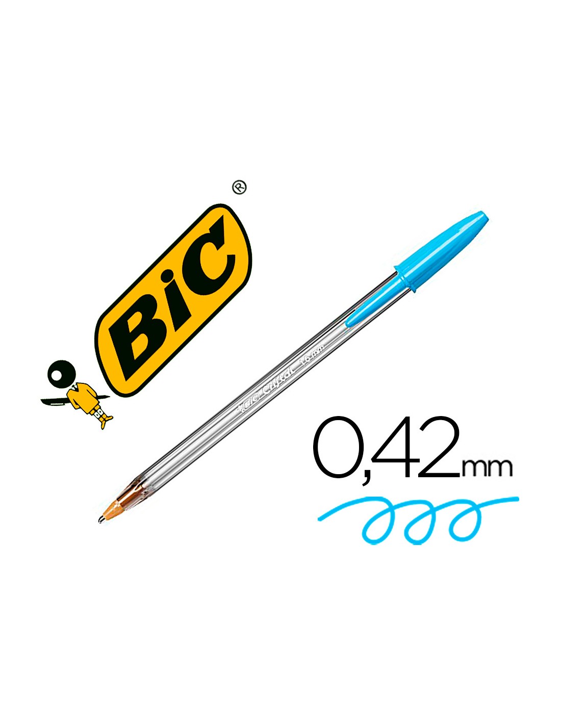Bolígrafo de punta gruesa. Tinta a base de aceite. Cuerpo transparente que permite ver el nivel de la tinta. Capuchón ventilado y tapón del color de la tinta. Con tinta de alta calidad en colores vivos. Punta de 1,6 mm. Trazo de 0,42 mm.