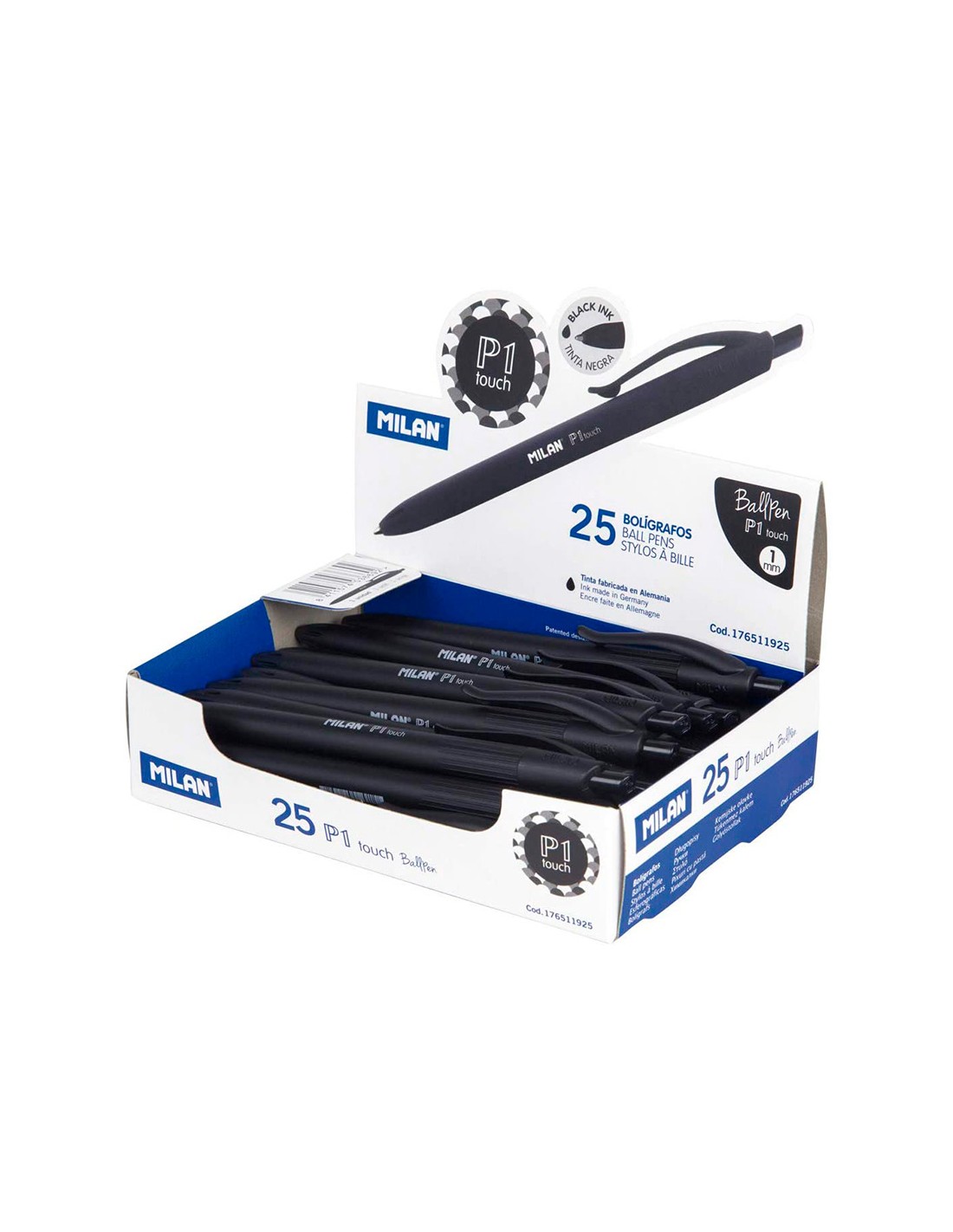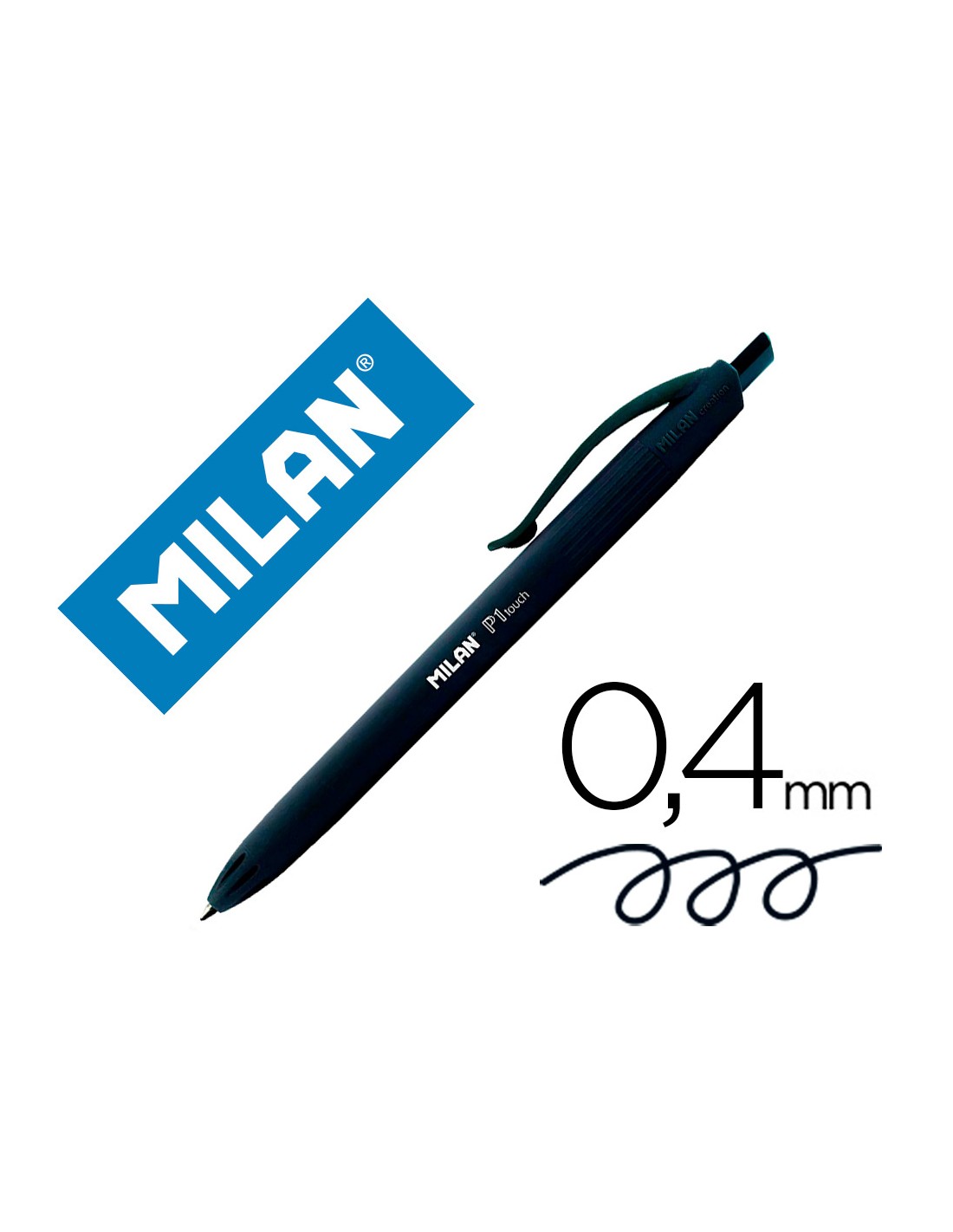 Tinta de aceite fabricada en Alemania. Cuerpo del mismo color que la tinta. Diseño original creado por el departamento de I+D de MILAN. Longitud de escritura aproximada de 1200 metros. Punta 1 mm. Trazo de 0,4 mm.