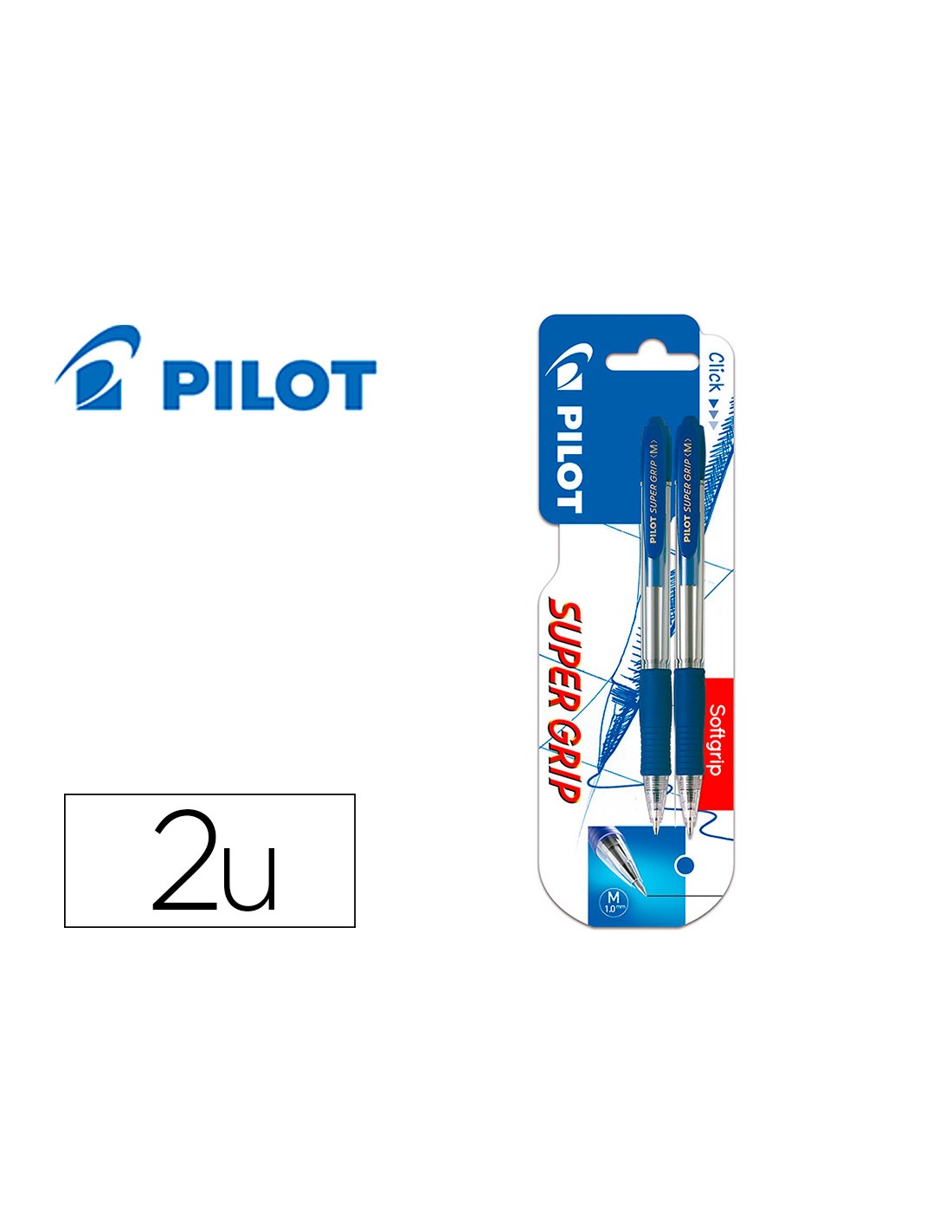 boligrafo pilot super grip azul retractil sujecion de caucho tinta base de aceite en blister de 2 unidades