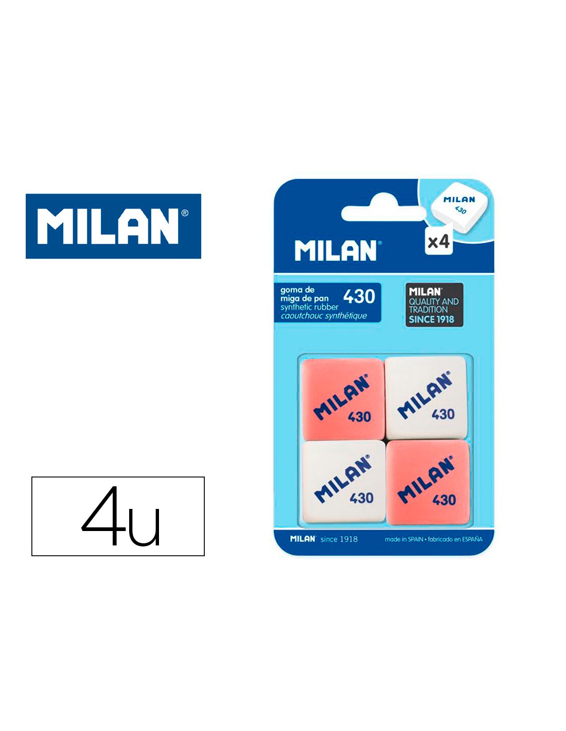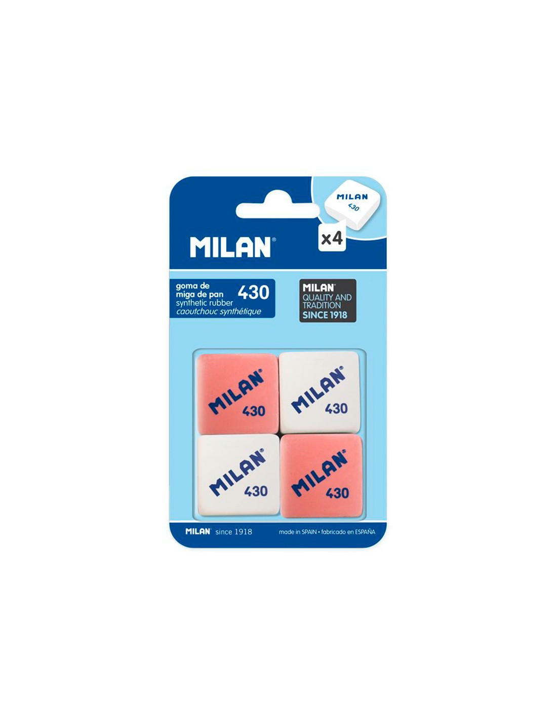 Goma de borrar milan 430 blister de 4 unidades