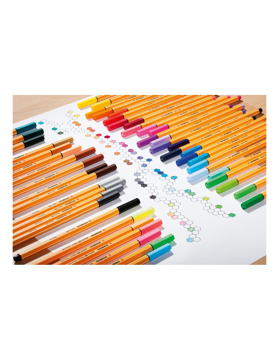 Rotulador con punta fina número uno en Europa. Con un diseño hexagonal de finas líneas inconfundibles. Punta de fibra con refuerzo de metal para una larga vida. Apta para usar con reglas y plantillas. Tinta con base al agua. Larga vida sin tapón. Trazo de 0,4 mm.