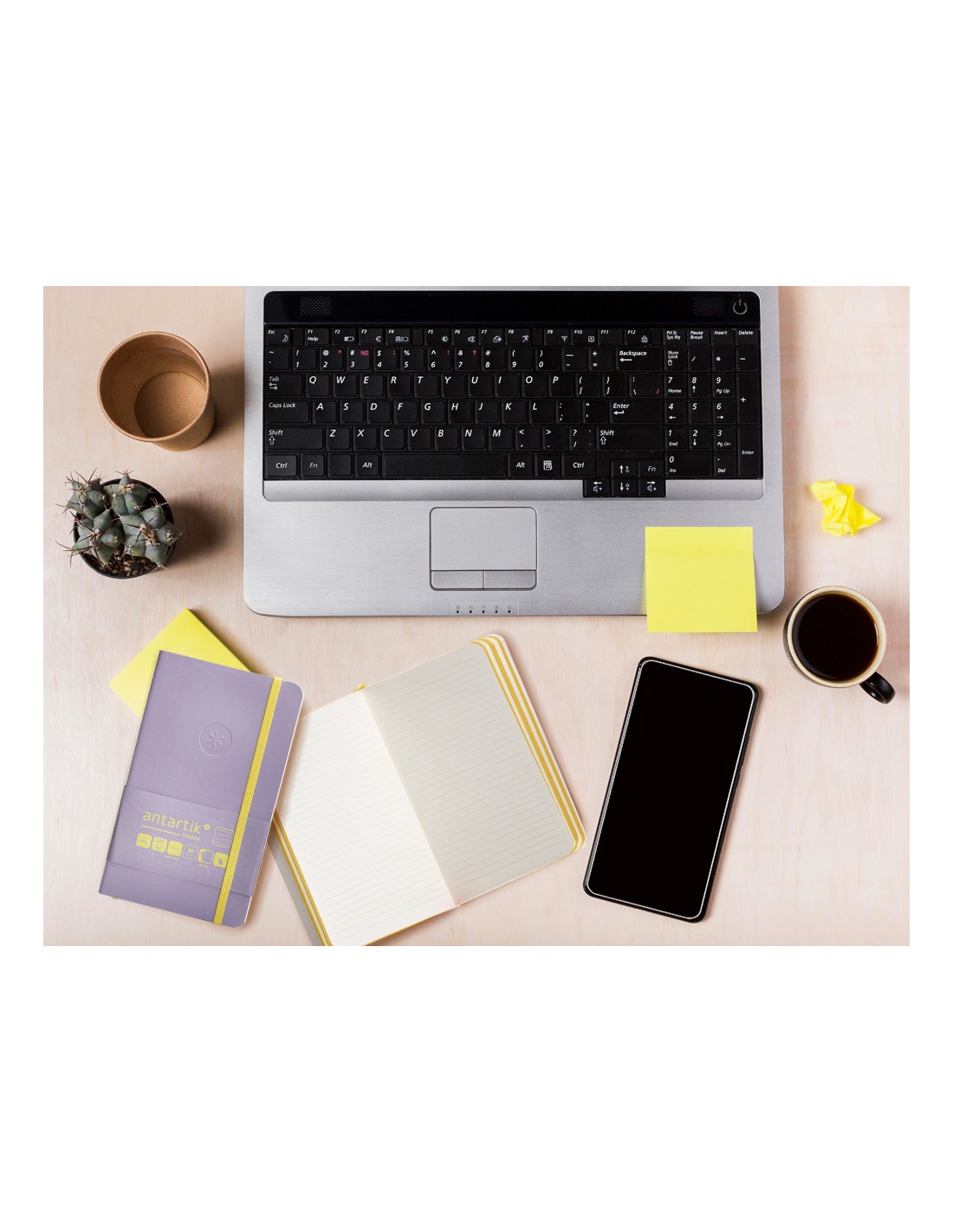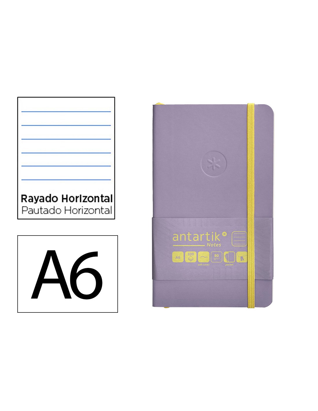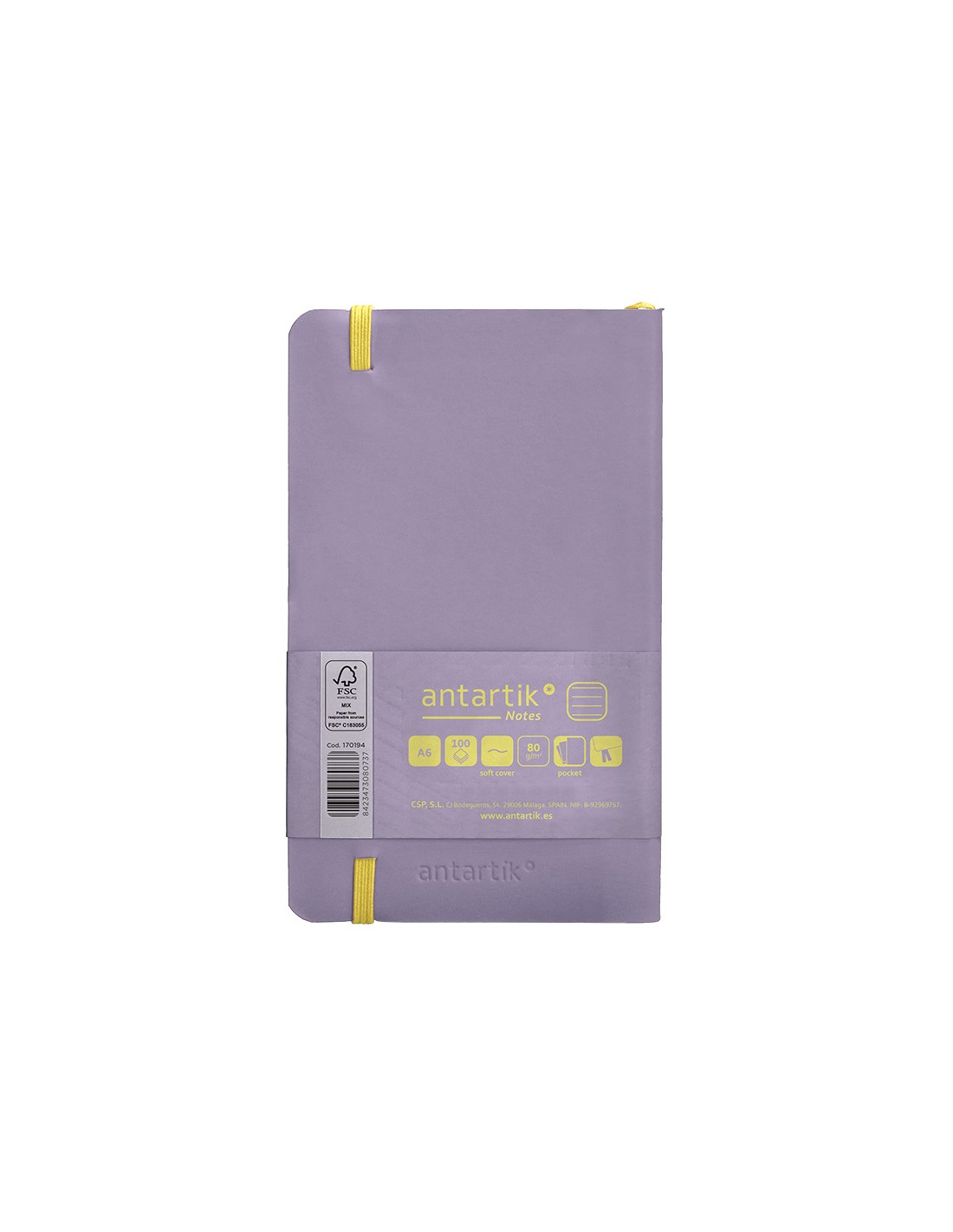 Cuaderno con gomilla antartik notes tapa blanda a6 rayas morado y amarillo 100 hojas 80 gr fsc