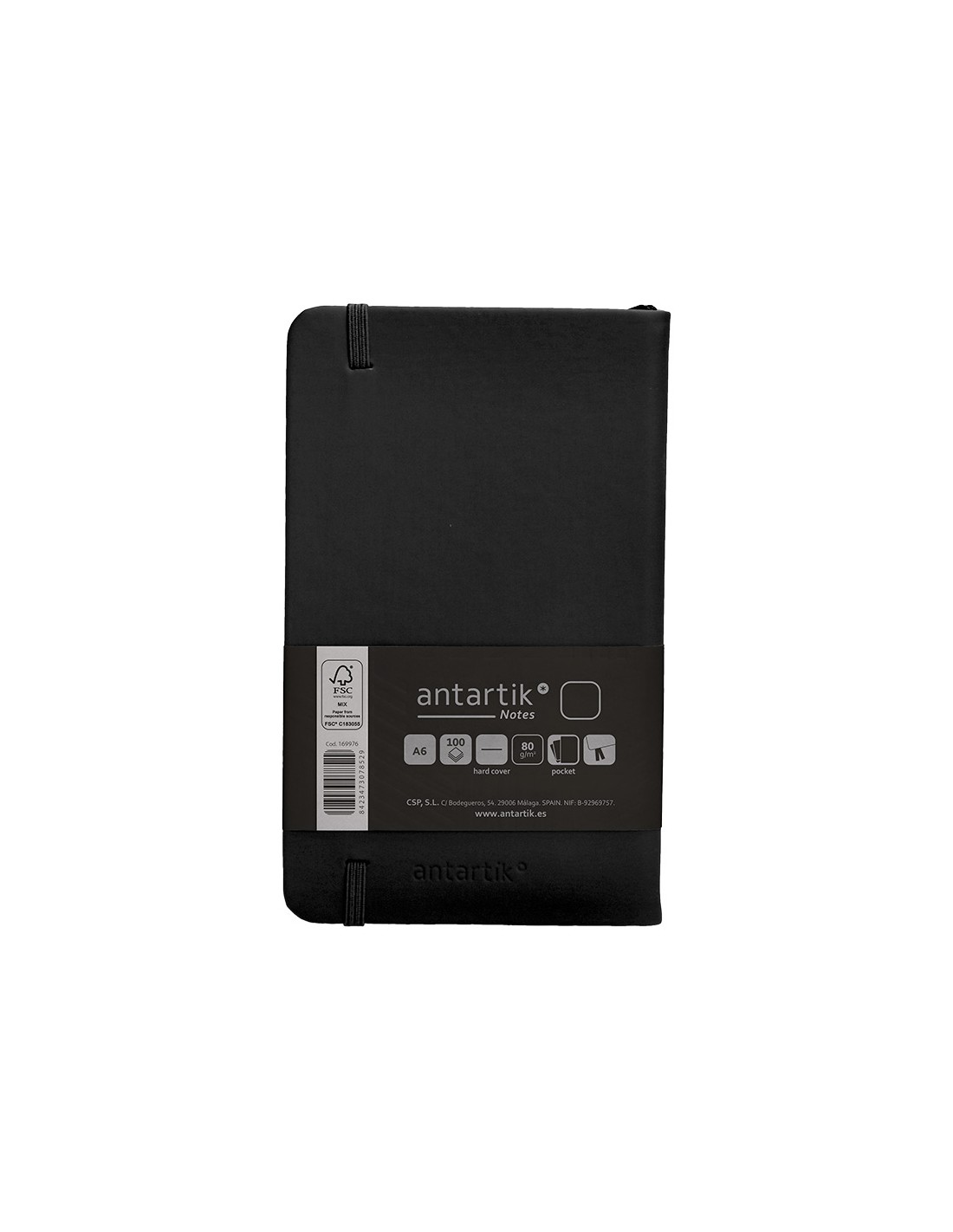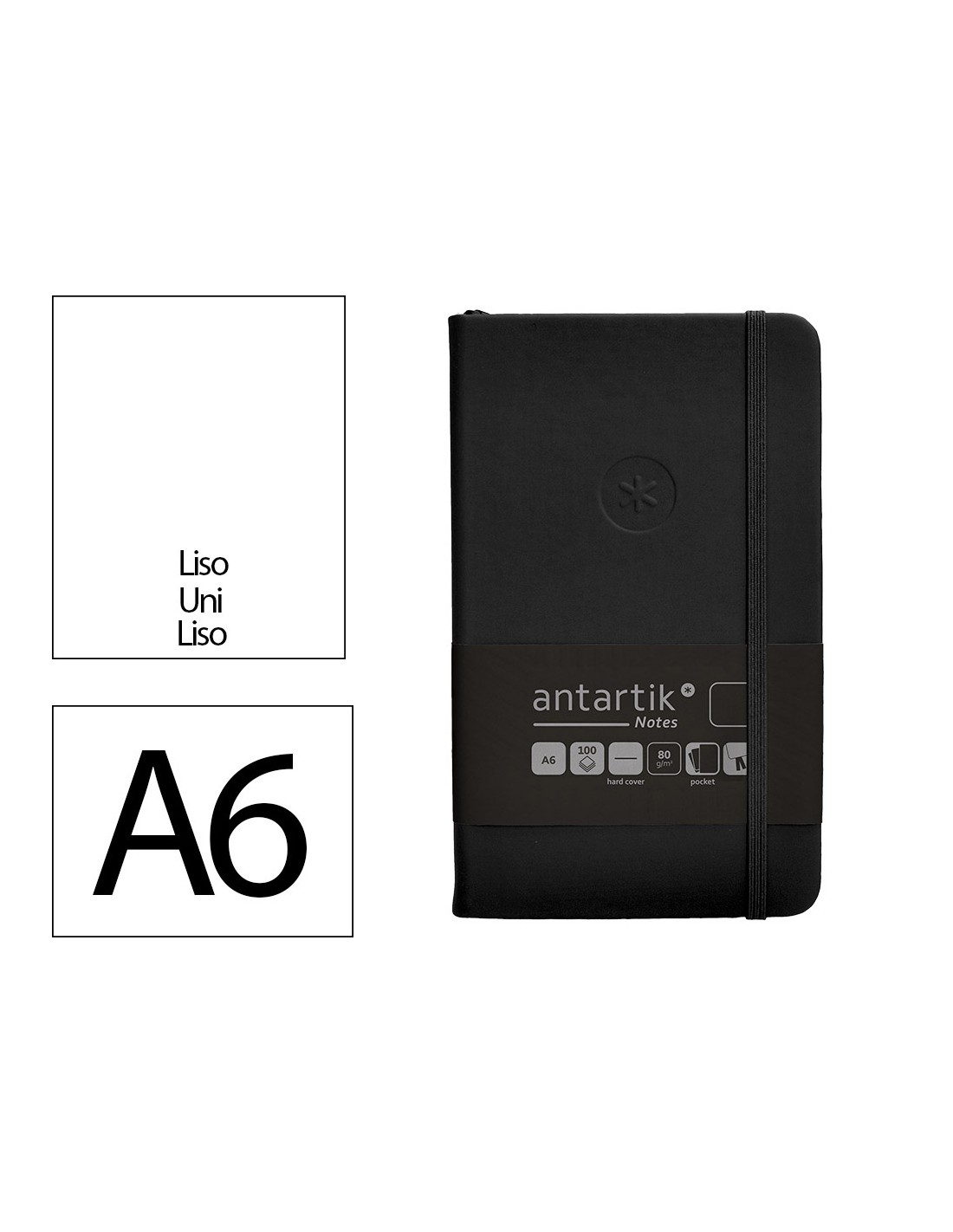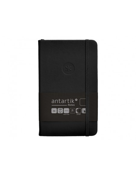 Cuaderno con gomilla antartik notes tapa dura a6 hojas lisas negro 100 hojas 80 gr fsc