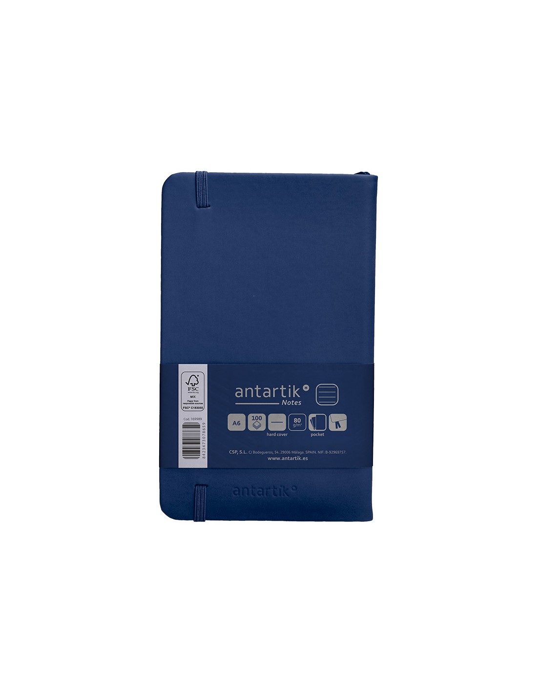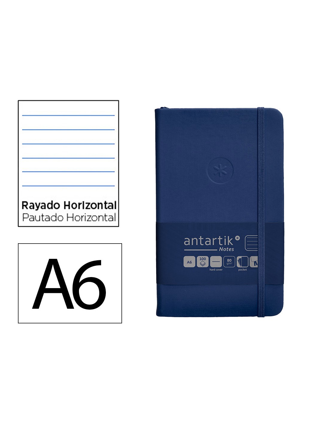 Cuaderno con gomilla antartik notes tapa dura a6 hojas rayas azul marino 100 hojas 80 gr fsc
