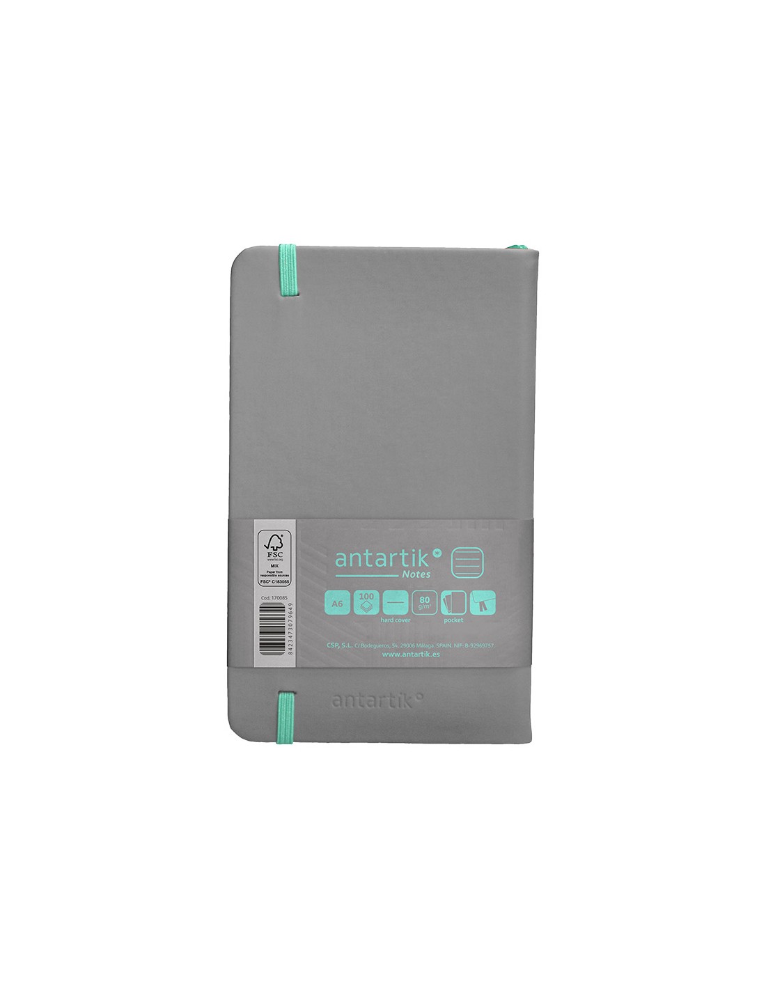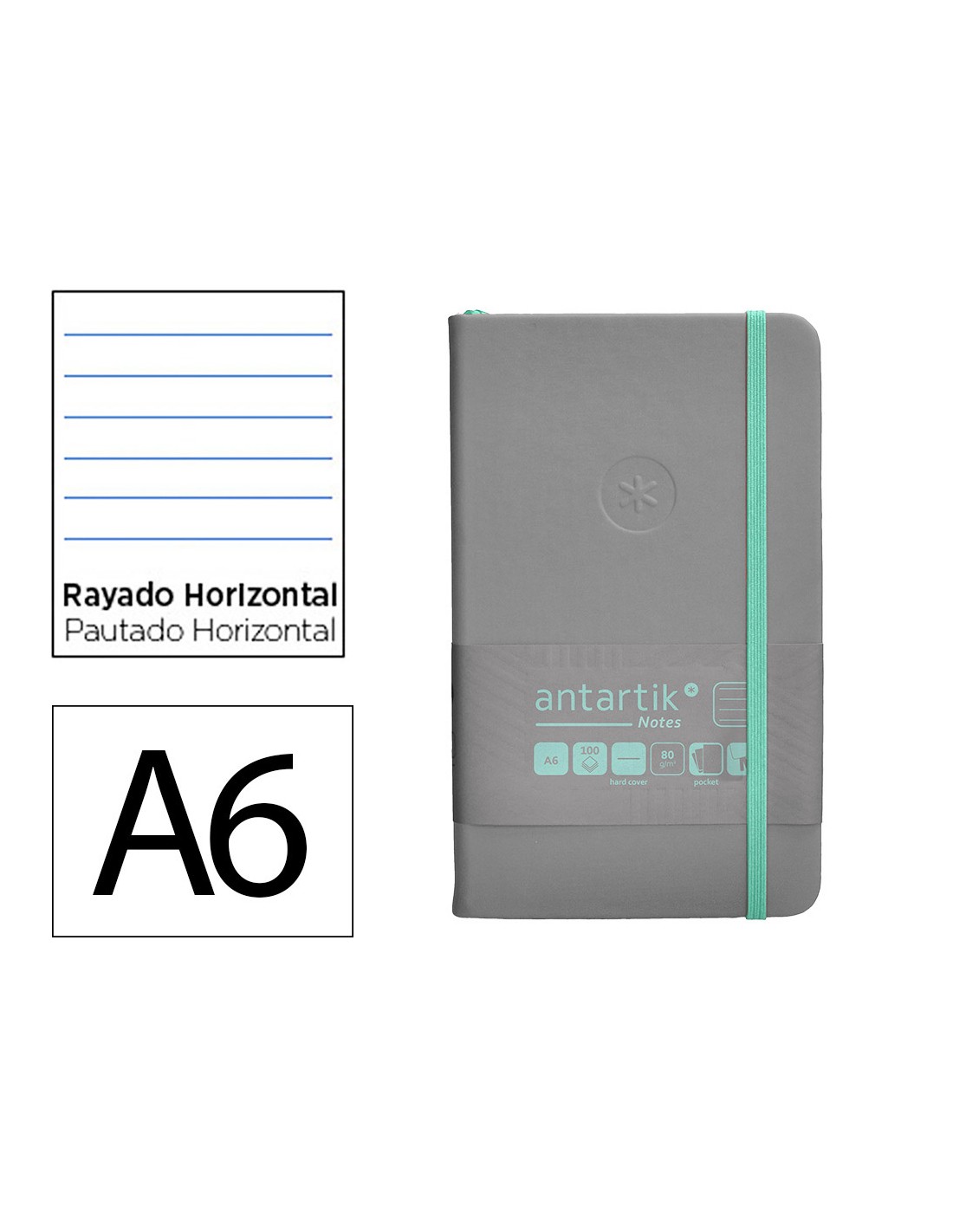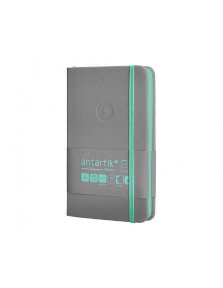 Cuaderno con gomilla antartik notes tapa dura a6 hojas rayas gris y turquesa 100 hojas 80 gr fsc