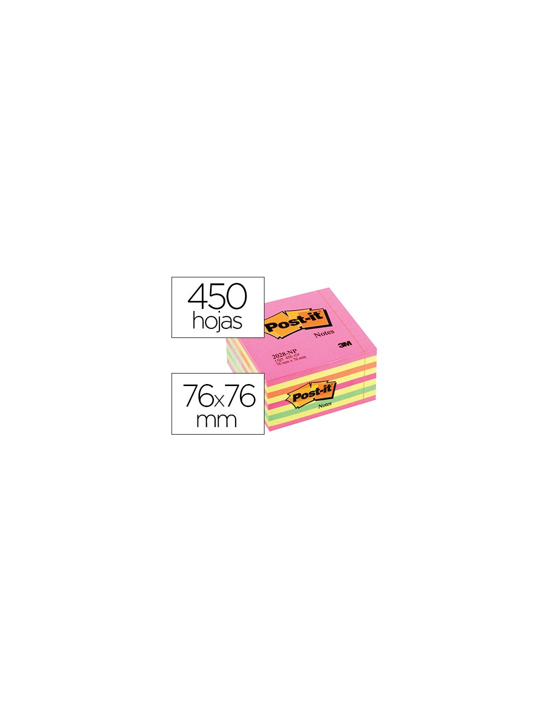 Recomendables para escribir datos. Colores en tonos intensos. Medidas 76 x 76 mm. El cubo de 450 hojas.