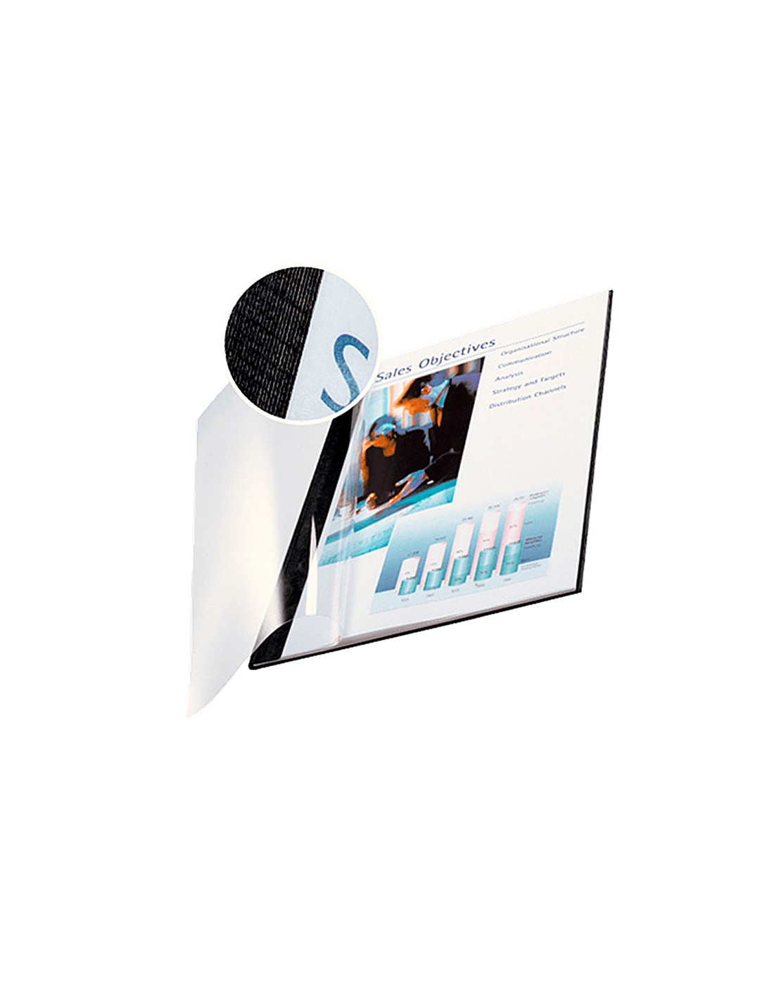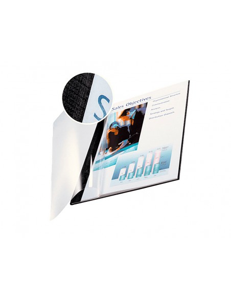 Tapa para sistema de encuadernación por presión. Superficie gofrada. Textura de lino. Formato DIN A4. Lomo AA de 3,5 mm. Con capacidad de 10 a 35 hojas.