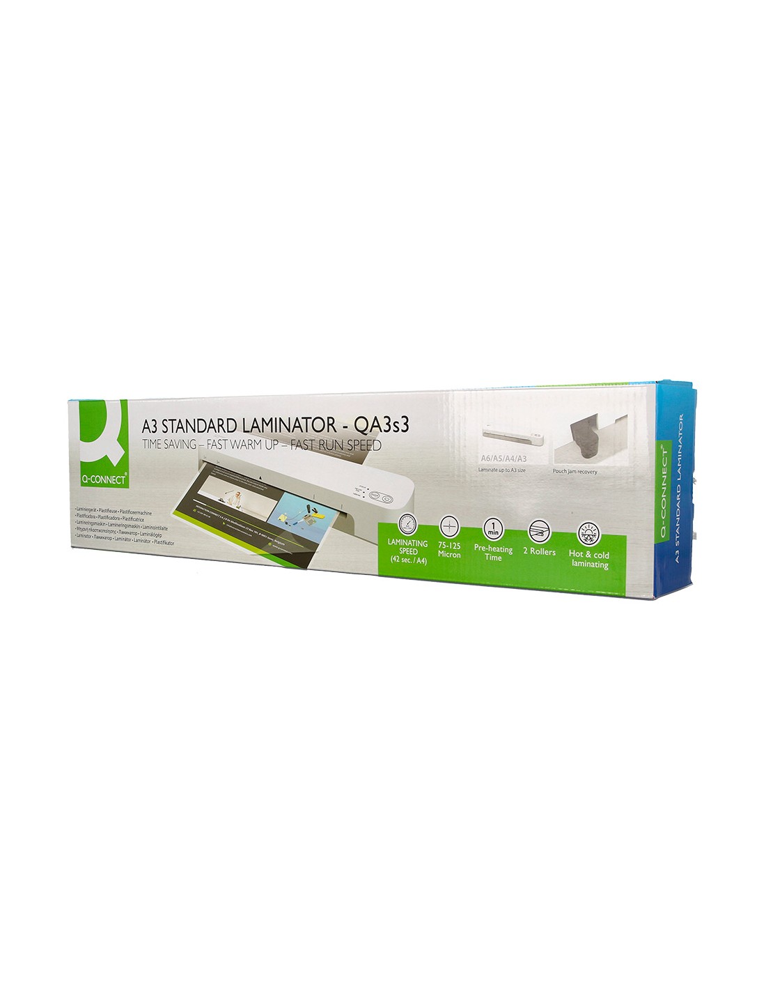 Plastificadora q-connect kf19091 din a4 estandar 2 rodillos hasta 125 mc