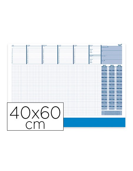 Ideal para escritorio. Calendarios 2022/2023/2024 y festivos nacionales. Papel de 90 g/m². 40 hojas encoladas. Incluye protector azul para no dañar las hojas. Medidas 595 x 420 mm.