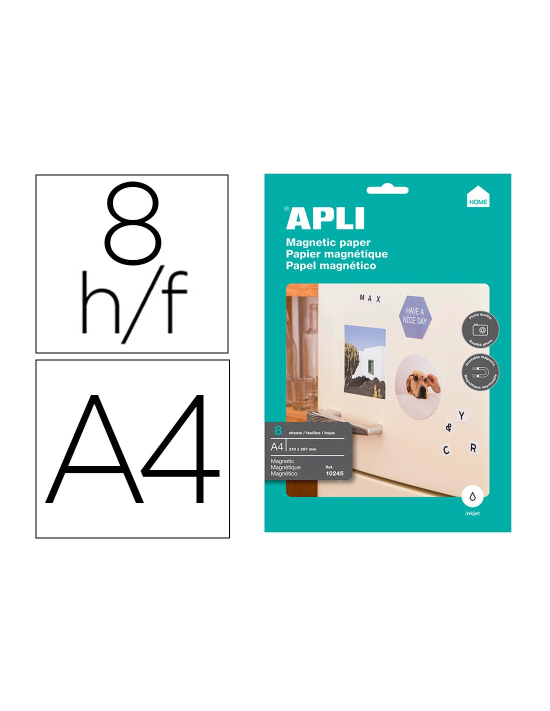 Papel magnetico apli blanco din a4 para impresoras inkjet paquete de 8 hojas