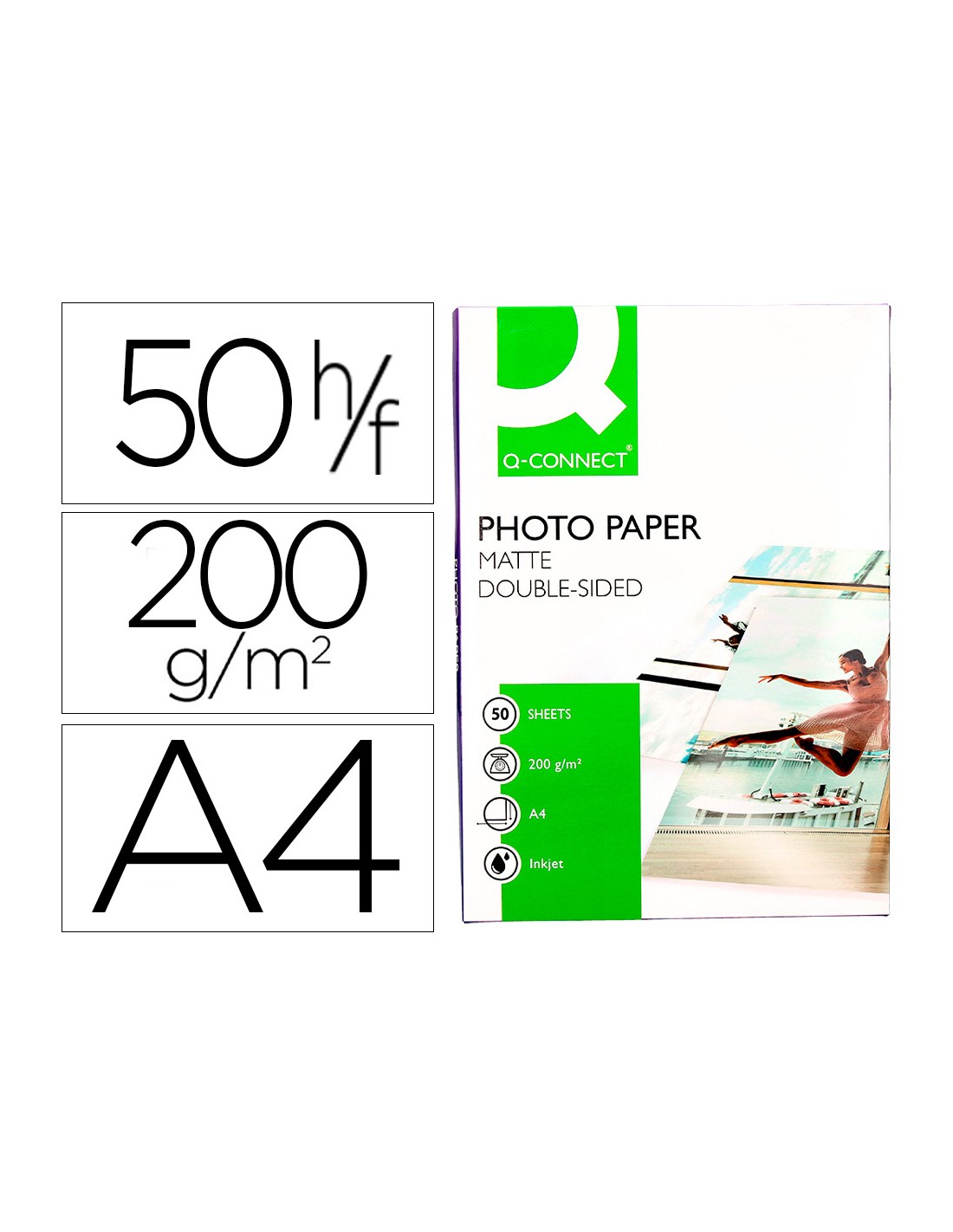 Papel q-connect foto mate doble cara din a4 para fotocopias e impresoras ink- jet bolsa de 50 hojas 220 gr